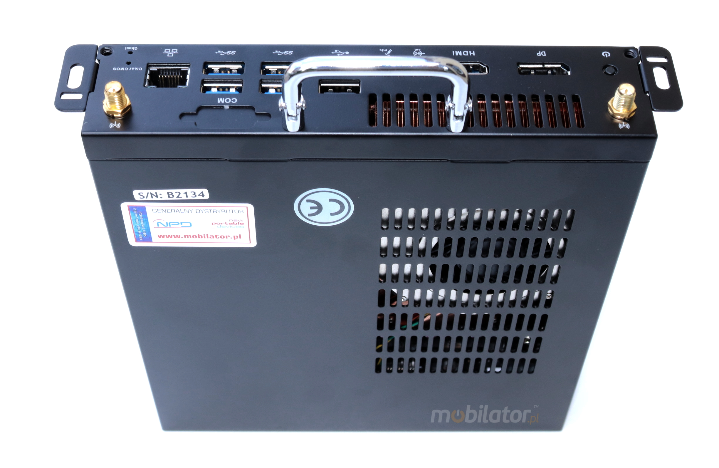 The industrial Mini PC uses a proven cooling system, based only on solid elements, mainly heat sinks.The system uses the phenomenon of metals passing thermal energy into the environment through openings in the housing. This solution provides better cooling in relation to pasive cooling.
