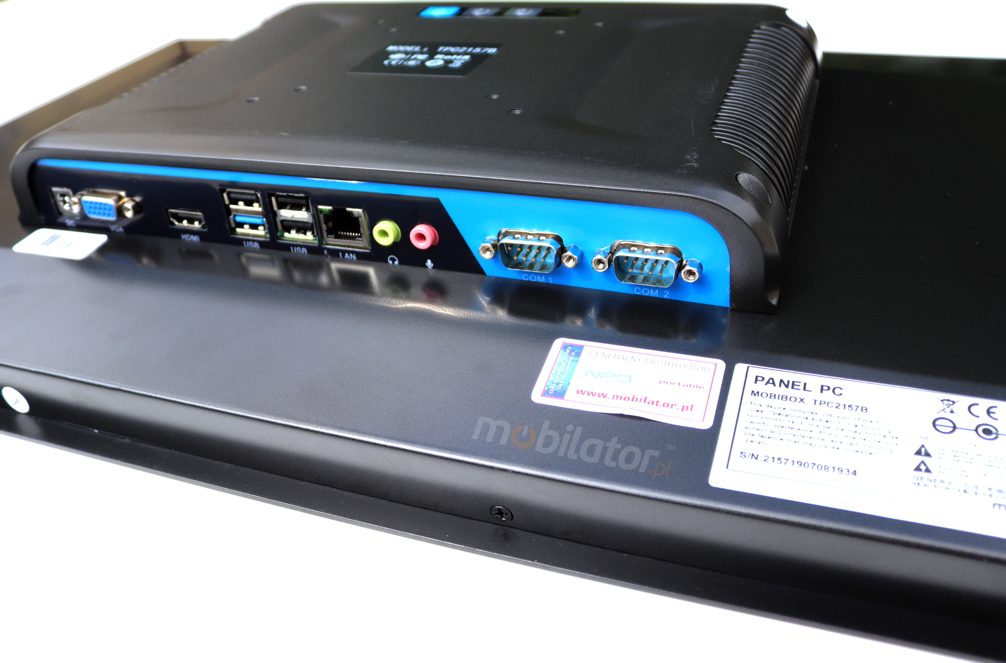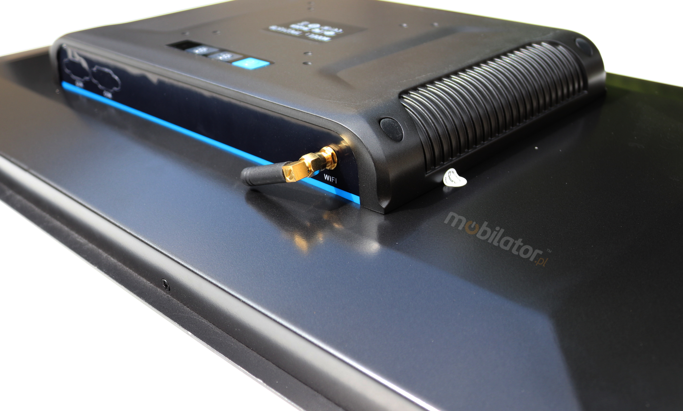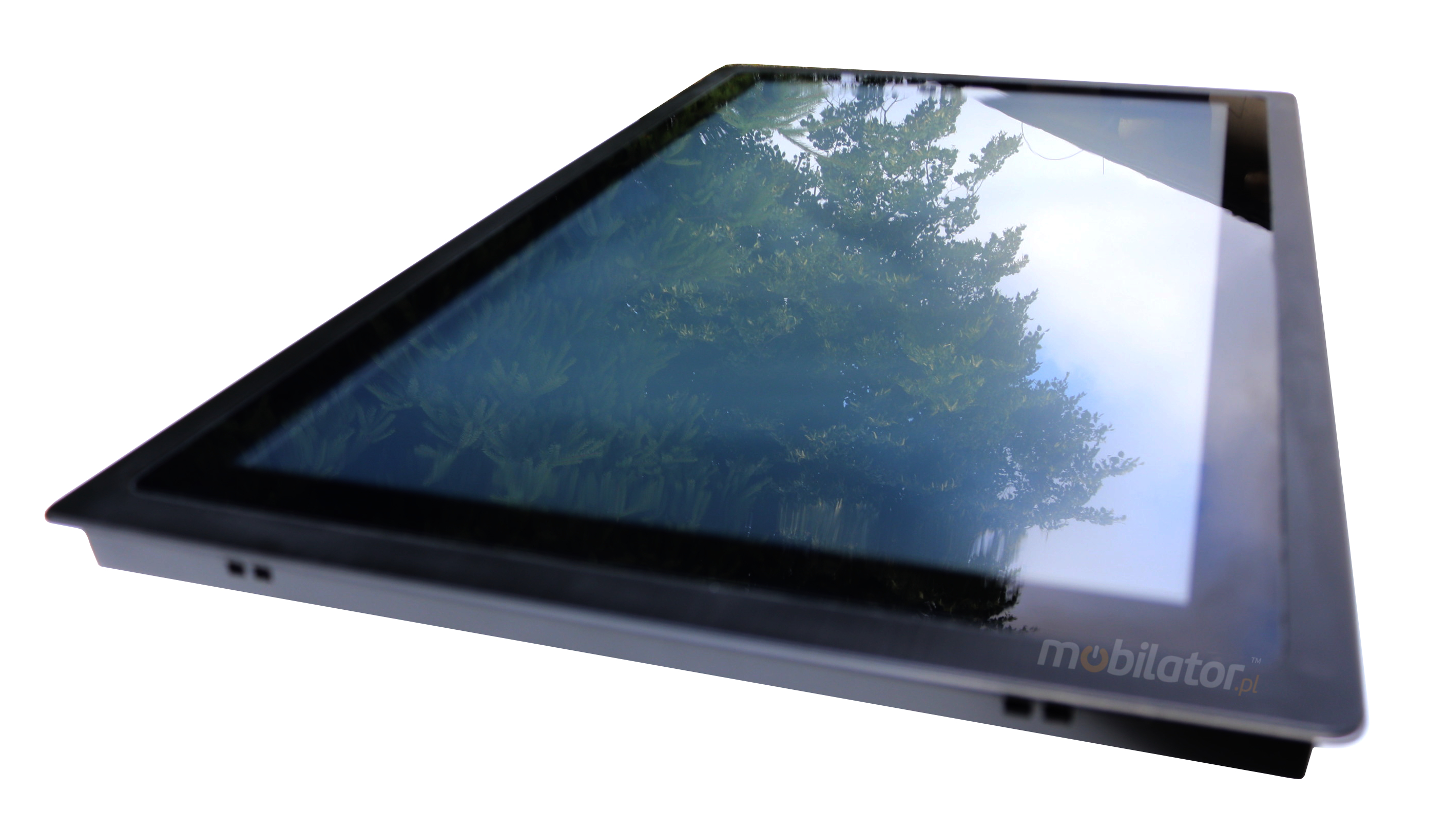 Amplified, waterproof industrial computer MobiBOX IP65 J1900 21.5 has a water-resistant and scratch-proof 21.5" LED screen 1920x1080 resolution offers good image quality, and high brightness in the 350 cd/m² range gives better color saturation and contrast and allows significantly improved visibility even in the case of incident The display of the resistive type provides the user with a clear image and ease of use by touch.