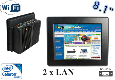 Connector: Integrated IntelRTL8111E LAN 2xRJ-45 1000M and WiFi module allows you to connect the device to the network. The computer is equipped with: two LAN connector, four COM ports (RS232) (COM1 can be support RS422/485), two USB 2.0 ports, one VGA output, one GPIO input/output.