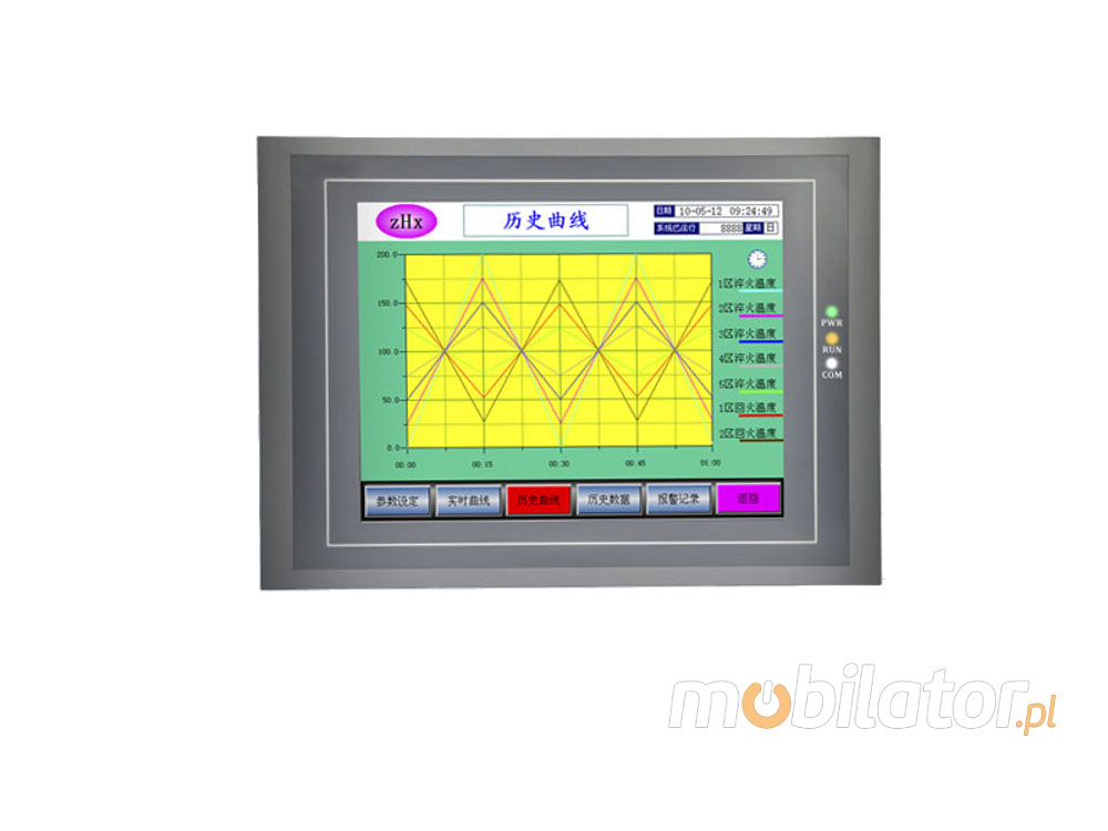 HMI enclosure is made from a specialized blend of PC / ABS (polycarbonate / acrylonitrile-butadiene-styrene)providing a very high resistance to mechanical damage. With this construction it is ready for use even in extreme conditions such as heat, cold or vibration at any time. In addition, the front panel of the device has IP65 international standard, which confirms the water resistance and a complete protection against dust.