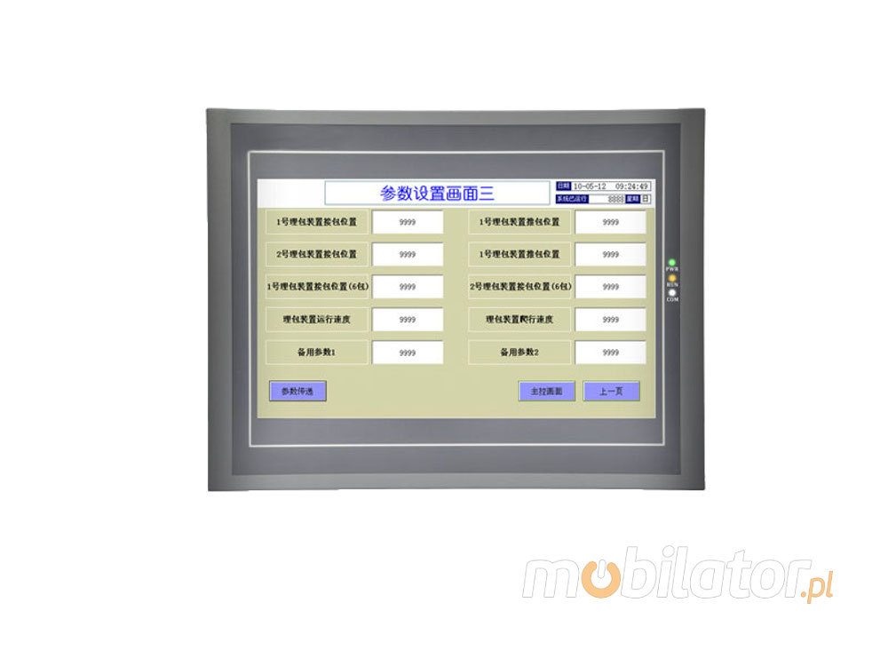 HMI MKS-102AE is equipped with a 10.2 inch screen and the overall size of its design is only 266mm x 208mm x 40mm and its weight is only 2kg. With such a small size it can be used in even if there is not much available space. In addition, HMI has the possiblility to mount it on a wall for the greatest convenience and ease of access.