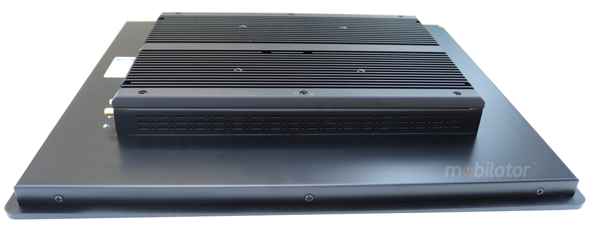 Panel PC has a high quality casing made from steel alloys. It is a very crucial component of cooling system thanks to openings allowing air flow inside casing, supporting constantly working fan. Overall design concentrates on simplicity and functionality which are in high demand amongst professionals.