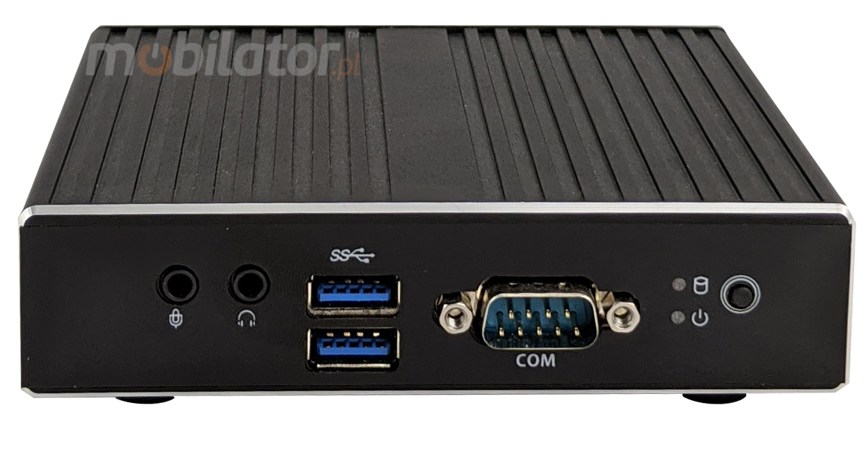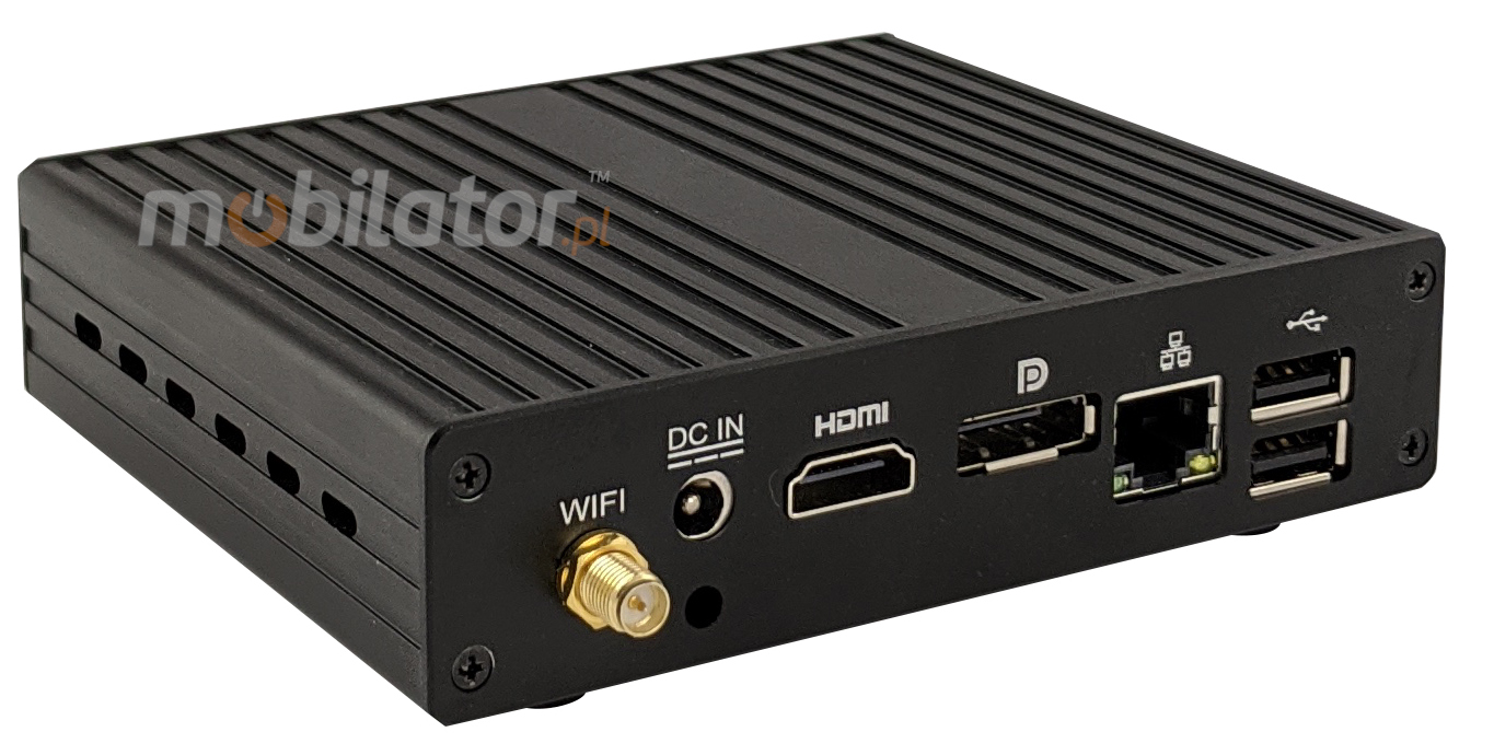The industrial Mini PC uses a proven cooling system, based only on solid elements, mainly heat sinks.The system uses the phenomenon of metals passing thermal energy into the environment - there are no additional moving elements in the form of eg fans.This solution ensures noiseless operation, lower failure rate and greater protection against dust and other dirt while reducing the amount of energy consumed.