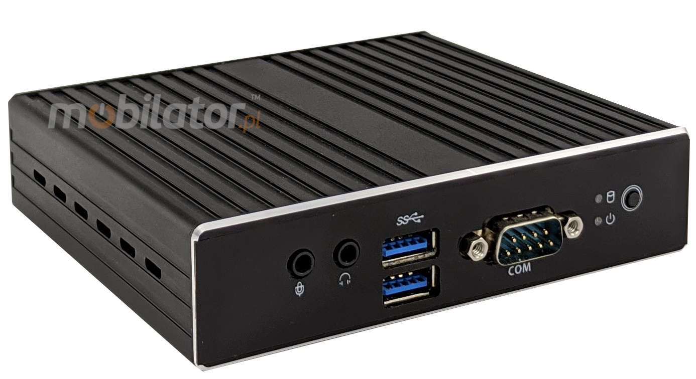 The industrial Mini PC uses a proven cooling system, based only on solid elements, mainly heat sinks.The system uses the phenomenon of metals passing thermal energy into the environment - there are no additional moving elements in the form of eg fans.This solution ensures noiseless operation, lower failure rate and greater protection against dust and other dirt while reducing the amount of energy consumed.