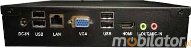Integrated card - Intel RTL8111E-VL allow connection to the network. The computer is equipped with: one LAN port, one COM port (RS232), one HDMI port, one VGA outpu, four USB 2.0 ports, two USB 3.0 ports.