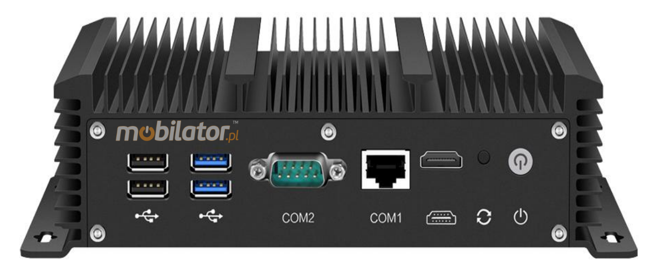 The industrial Mini PC uses a proven cooling system, based only on solid elements, mainly heat sinks.The system uses the phenomenon of metals passing thermal energy into the environment - there are no additional moving elements in the form of eg fans.This solution ensures noiseless operation, lower failure rate and greater protection against dust and other dirt while reducing the amount of energy consumed.