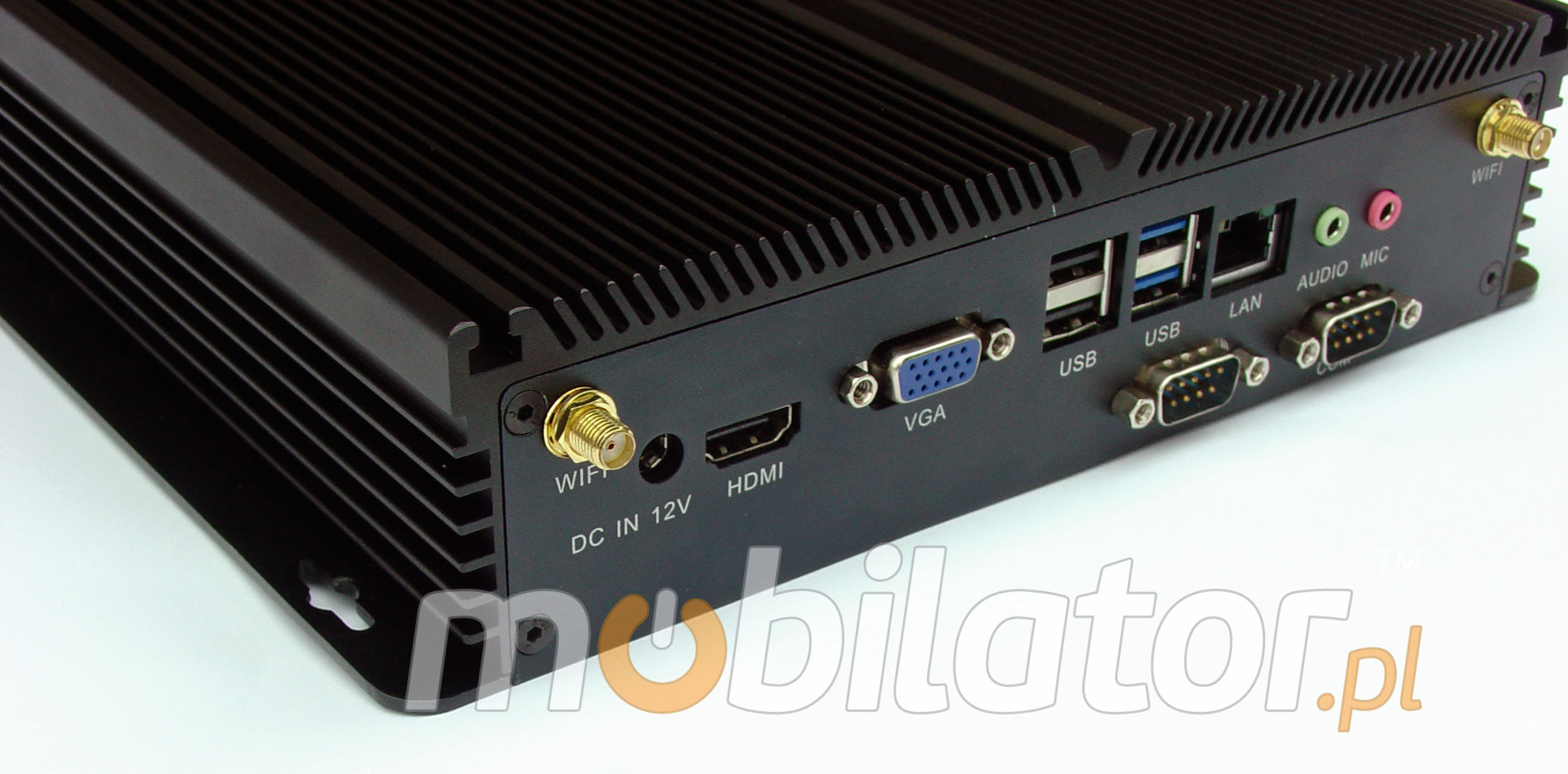 Industrial fanless MiniPC IBOX-TN1037u by to one COM port (RS232) can be used to connect multiple devices in the store or warehouse and make them easier to control. Its durable housing is perfectly designed for the harsh conditions prevailing in these areas. Any dust or dirt does not impede him in his work, will work without any problems even in high concentrations of dust and in polluted environments.