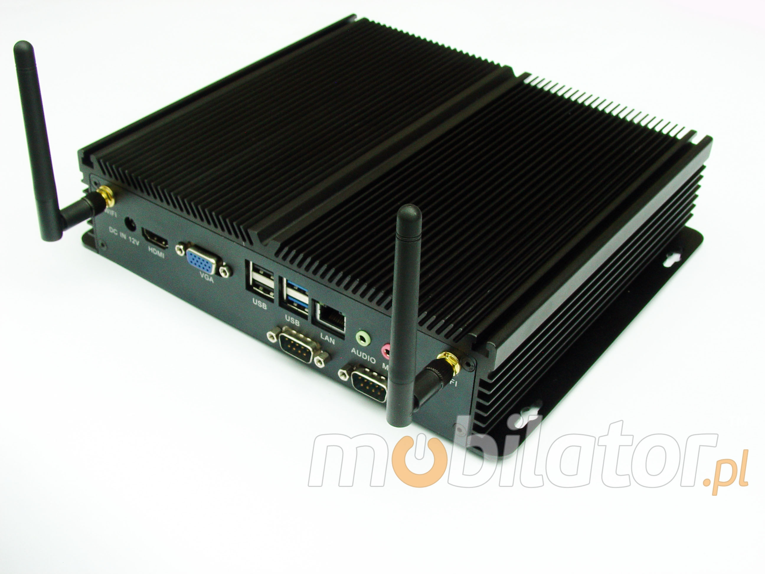 Industrial MiniPC Series IBOX-TN1037u are based on high-performance two-core processors and high-quality components. Mini computers are locked in small industrial housing which perfectly discharge heat from the device interior. Wide choice of IBOX models can give possibility to configure, enabling optimal selection of mini computer to multimedia applications and industrial applications. The biggest advantagesof these devices are: small size, performance and energy efficiency. An extra pair of brackets at the bottom of the enclosure increases the possibility of installation in all kinds of places and positions. Offered model mini PC has been selectively chosen and configured specifically to the requirements of Digital Signage systems, gaming machines, amusement machines, information kiosks and industrial automation systems.