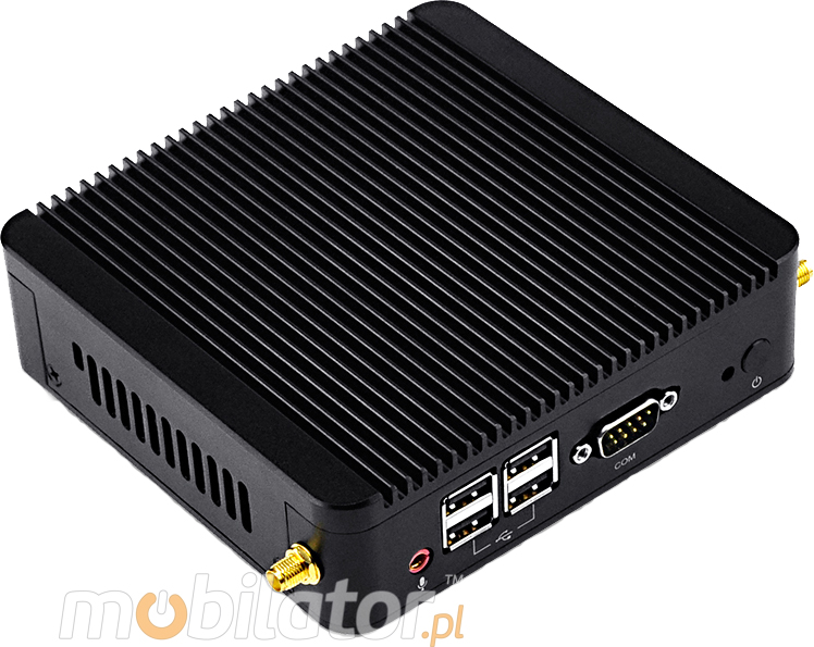 The Industrial Computer Fanless MiniPC mBOX Nuc Q107N uses a special method of cooling. This cooling takes place mainly by means of housing having a very large surface (longitudinal lamells, ribs) - for heat dissipation. Fan used inside the computer is designed to rapidly drain hot air from the CPU, allowing MiniPC to reach more efficiently and faster cooling.