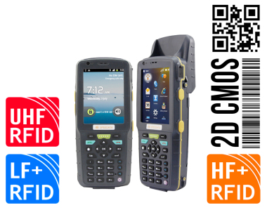 | RFID scanner (reader): | RFID HF 13.56 Mhz (ISO14443 A/B oraz ISO15693) - reading distance 3cm RFID LF 134.2khz (ISO11784/11785, FDX-B/HDX) - reading distance 10cm RFID LF 125khz - reading distance 10cm RFID UHF (865MHz-868MHz) ISO18000-6C (EPC Gen2) / ISO18000-6A,B - reading distance 1M |