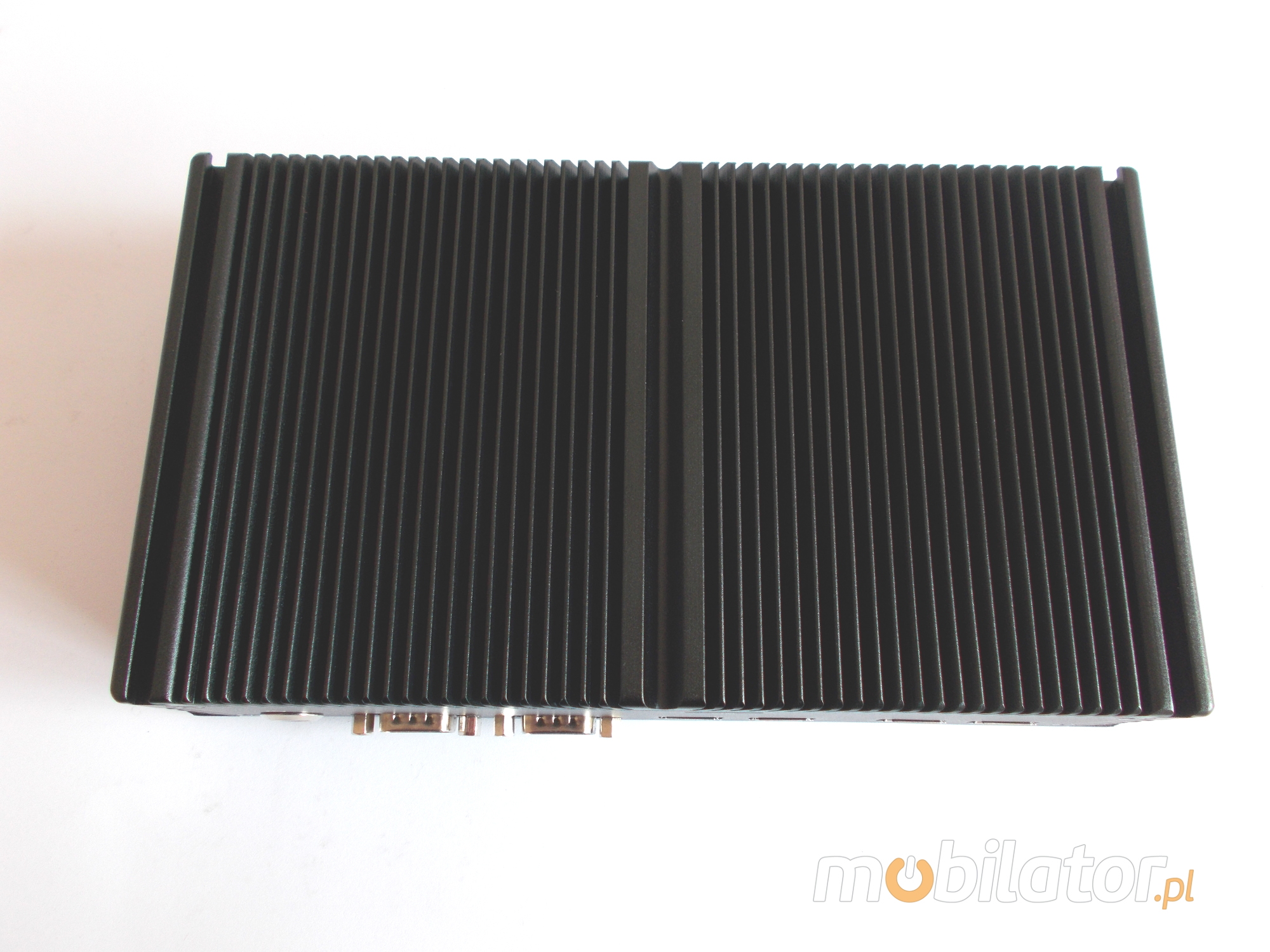 The industrial fanless MiniPC Nuc IBOX-101 uses a special method of cooling. This cooling takes place mainly by means of housing having a very large surface (longitudinal lamells, ribs) - for heat dissipation. Fan used inside the computer is designed to rapidly drain hot air from the CPU, allowing MiniPC to reach more efficiently and faster cooling.