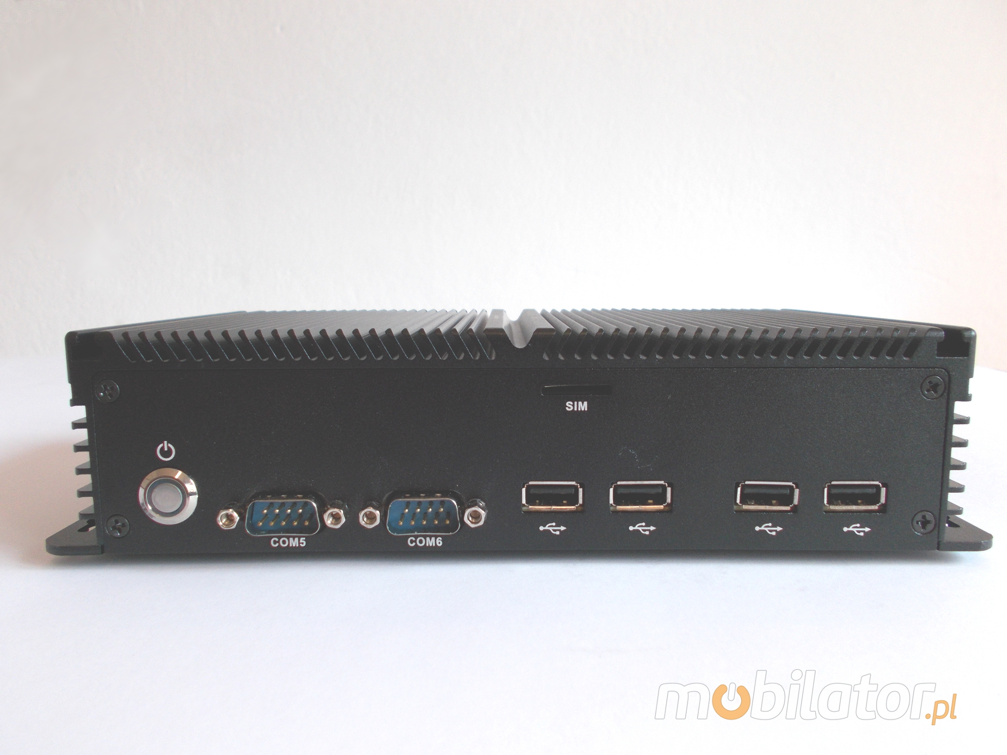 Integrated cards - Intel WGI211AT 1000M Lan and WiFi module allows connection to the network. The computer is equipped with: two LAN ports, one VGA port, six COM ports, one HDMI port, one GPIO interface oneUSB 3.0 ports, five USB 2.0ports, SIM Card slot and abuilt-inconnectoron the motherboard: two SATA ports, one MiniSATA port, and two Mini-PCIE connectors.