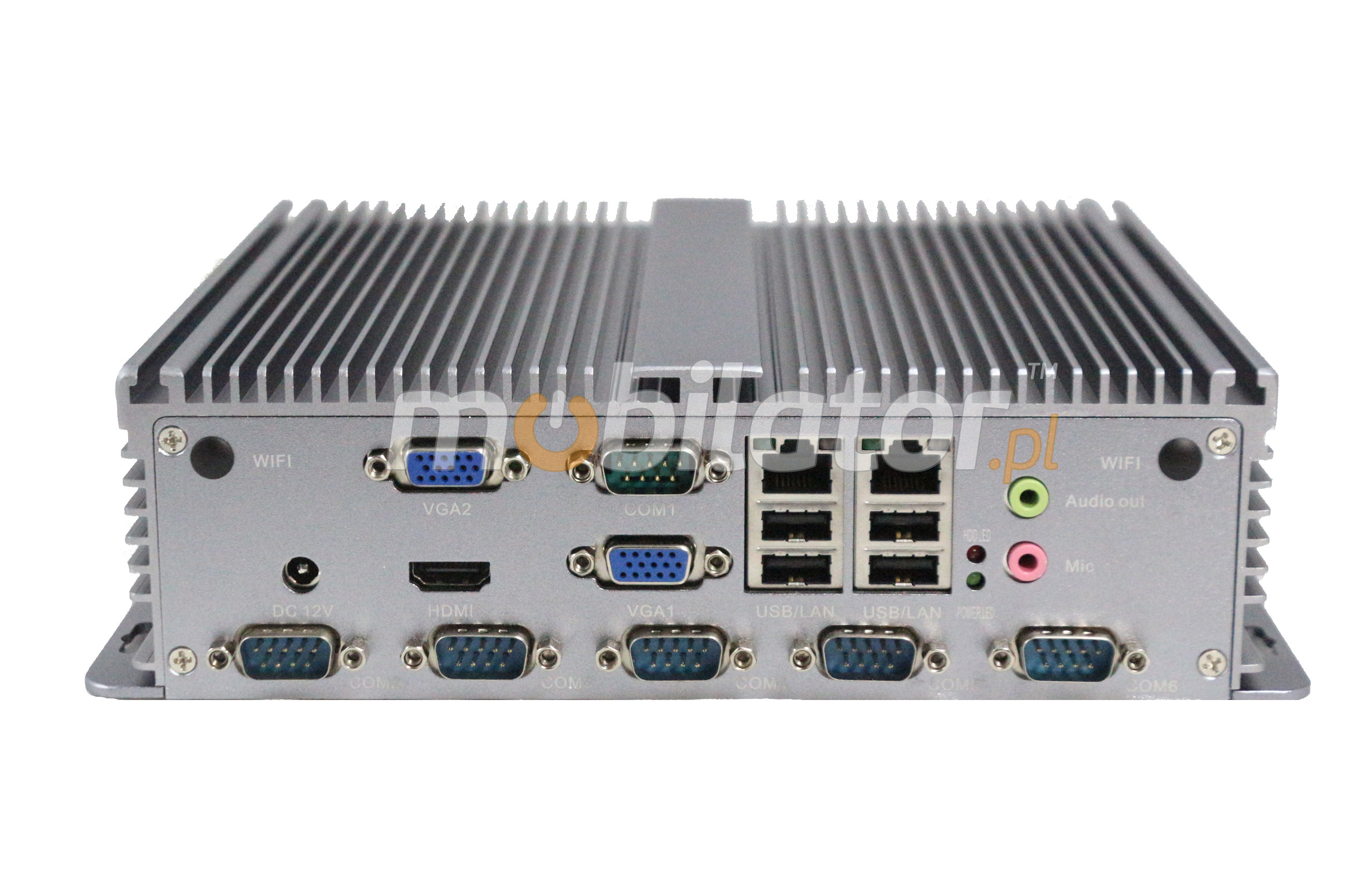 Integrated cards - Intel RTL8111E 1000M Lan and WiFi module allows connection to the network. The computer is equipped with: two LAN ports, one VGA port, optional COM ports ( max. 10), one HDMI port, eight USB 2.0ports, and abuilt-inconnectoron the motherboard: three SATA ports, one MiniSATA port, one SIM Card slot, two Mini-PCIE connectors, four USB 2.0 connectors and one GPIO slot.