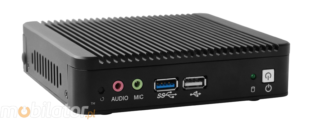 The industrial fanless MiniPC IBOX-501 N1-A uses a special method of cooling. This cooling takes place mainly by means of housing having a very large surface (longitudinal lamells, ribs) - for heat dissipation. Fan used inside the computer is designed to rapidly drain hot air from the CPU, allowing MiniPC to reach more efficiently and faster cooling.