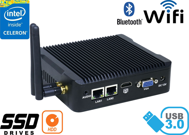 Small, fanless computer can find various of commercial applications such as computer system for sale, for display informations about the products on monitors or ads on the big screens.With the help of handles combined with the housing there are many mounting possibilities - such as: in shops (at the cash register, at the back of monitors for LCD / LED), in factories halls, in the cars which are used for distribute different kind of products, etc., will certainly find application in all kinds of networks trade.
