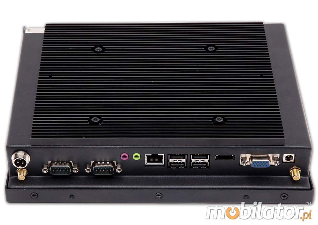 The integrated network card Intel RTL8111G 10/100/1000 Mbps LAN 2xRJ-45, WIFI allows you to connect the device to the network. The computer is equipped with: two LAN connector, three ports COM (RS232), one port COM (RS485), one VGA, one HDMI output, two USB 2.0 ports, one USB 3.0 port, one audio input, one input MIC, connector DC-in.