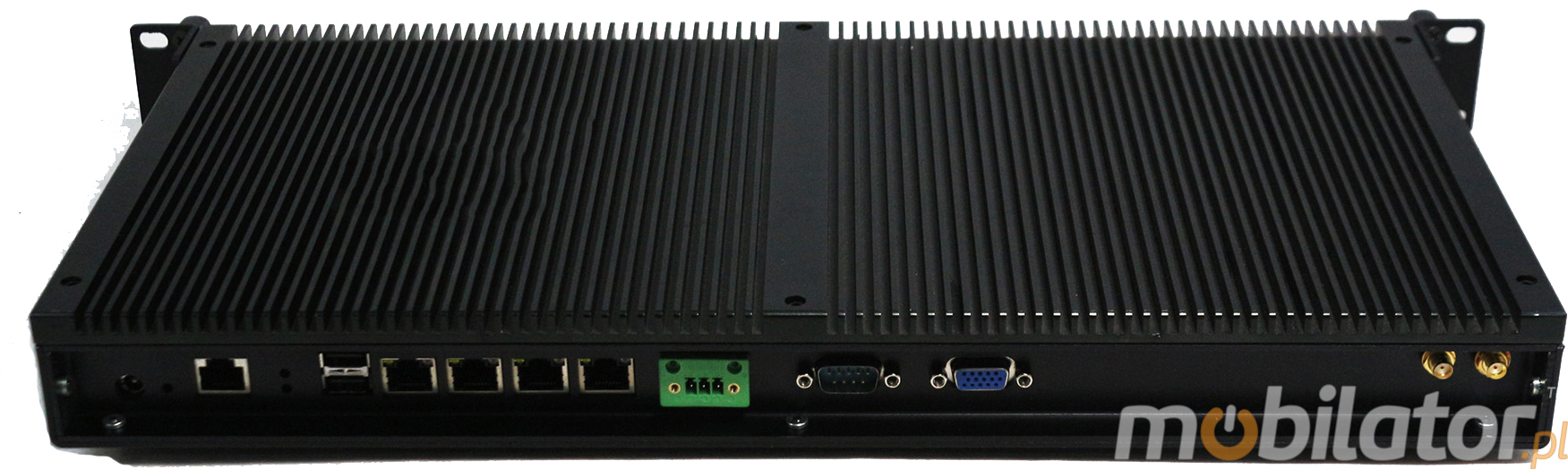 Integrated card - Intel 82583V 1000M Lan and WiFi module allows connection to the network. The computer is equipped with: four LAN ports, one COM port (RS232), one VGA output, one RJ-45 COM port, two USB 2.0 ports and connectors built into the motherboard: four USB 2.0 ports, two PowerOUT outputs, one CPUFAN, one SYSFAN connector.