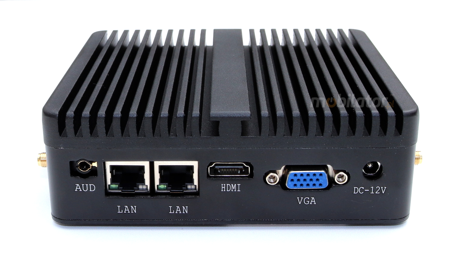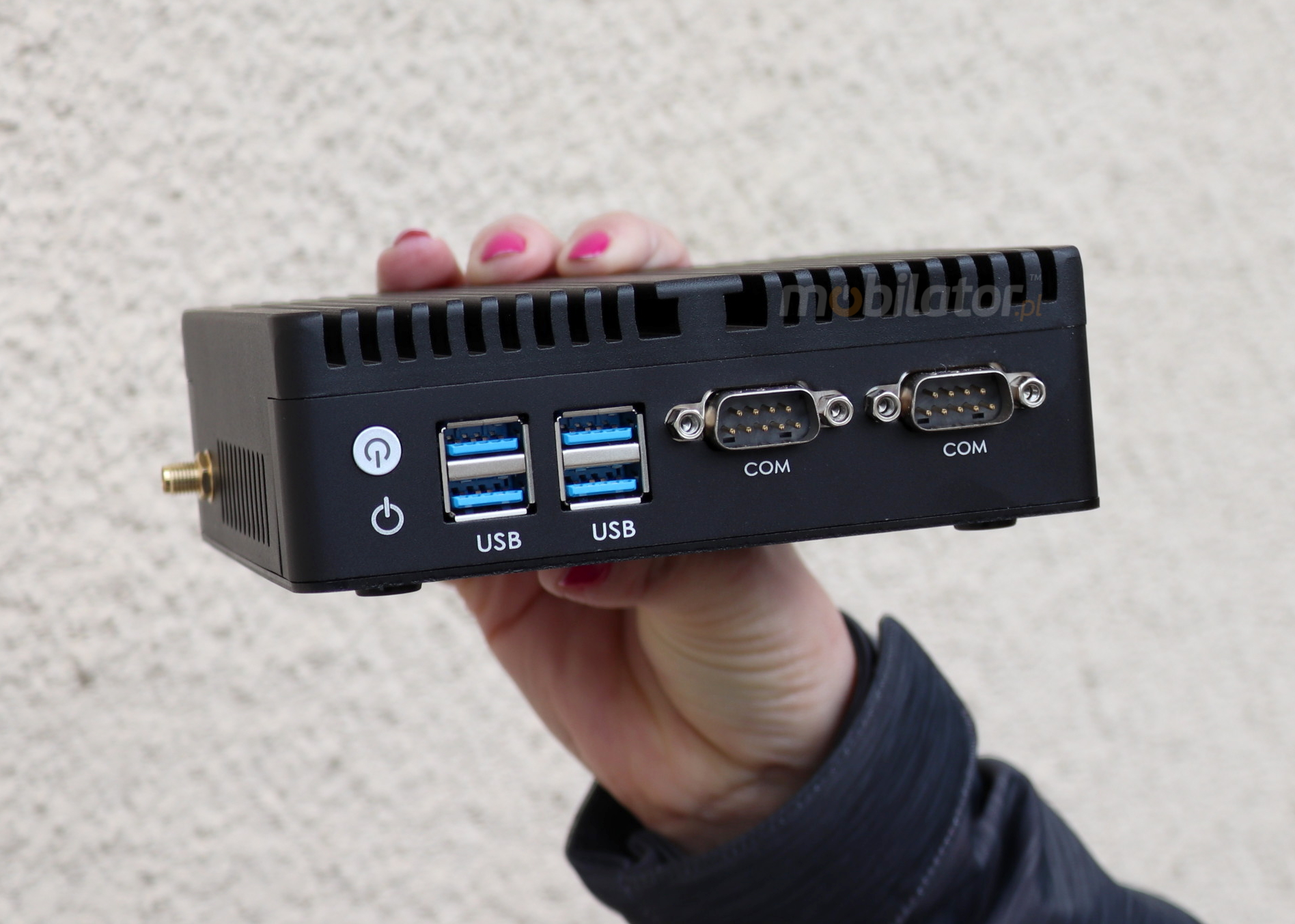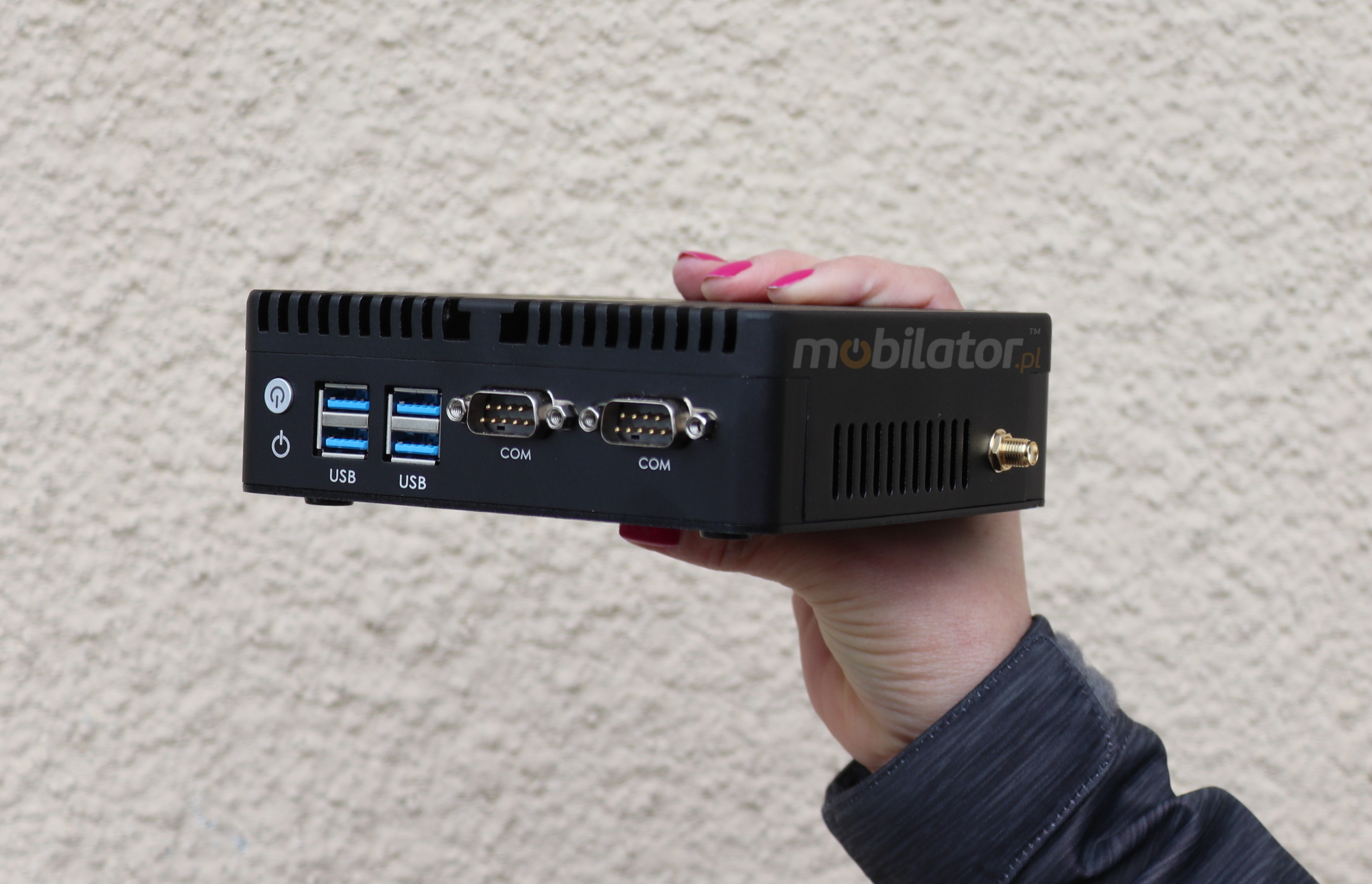 The passive cooling system used in the MiniPC yBOX-X30A combined with the SSD disk makes this computer very resistant to various types of mechanical injuries.An additional advantage of industrial computers is a solid construction made of high quality aluminum and specially designed in such a way that in addition to high efficiency in heat dissipation, it can also resist any external damage.