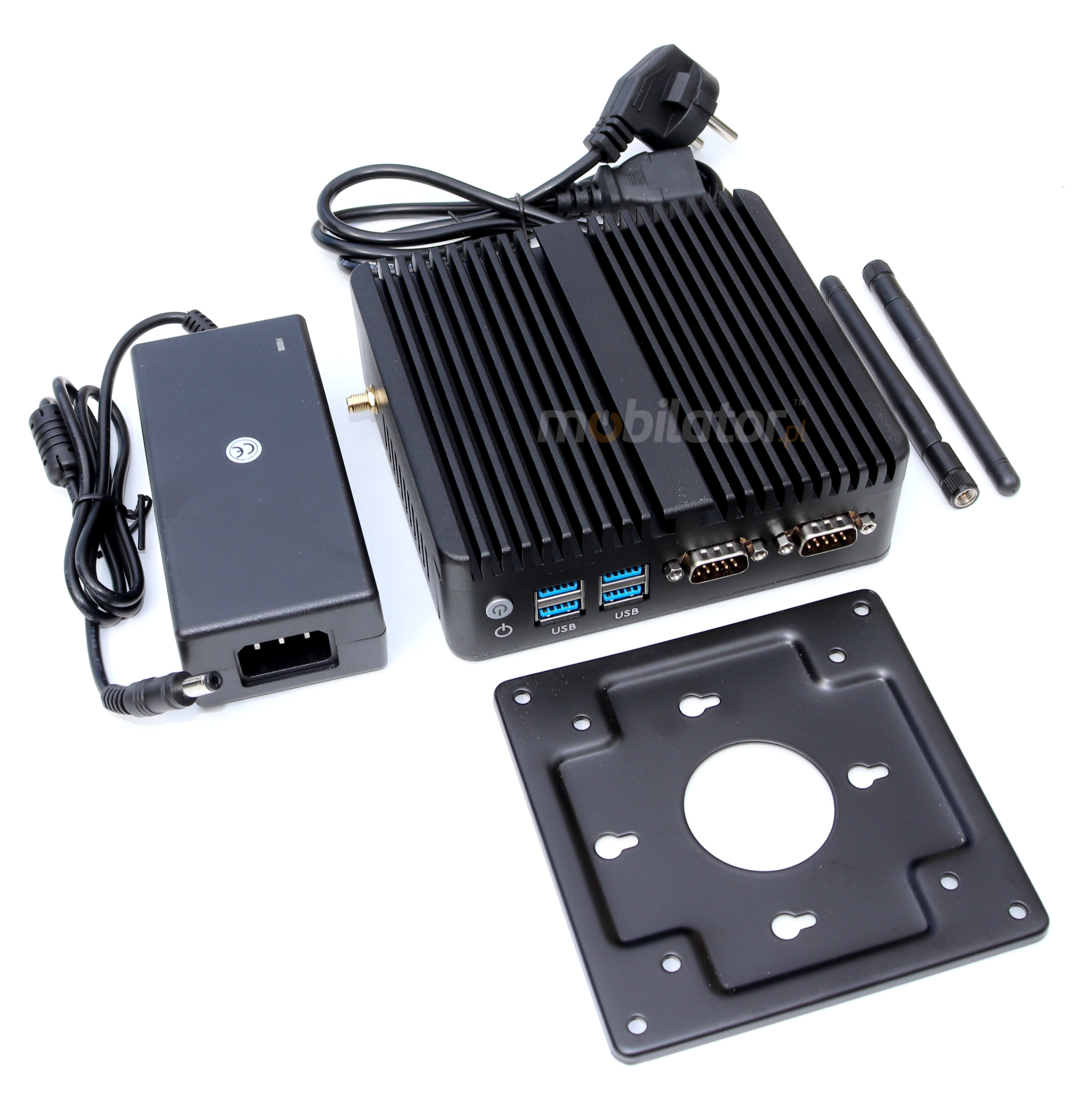 The industrial Mini PC uses a proven cooling system, based only on solid elements, mainly heat sinks.The system uses the phenomenon of metals passing thermal energy into the environment - there are no additional moving elements in the form of eg fans.This solution ensures noiseless operation, lower failure rate and greater protection against dust and other dirt while reducing the amount of energy consumed.