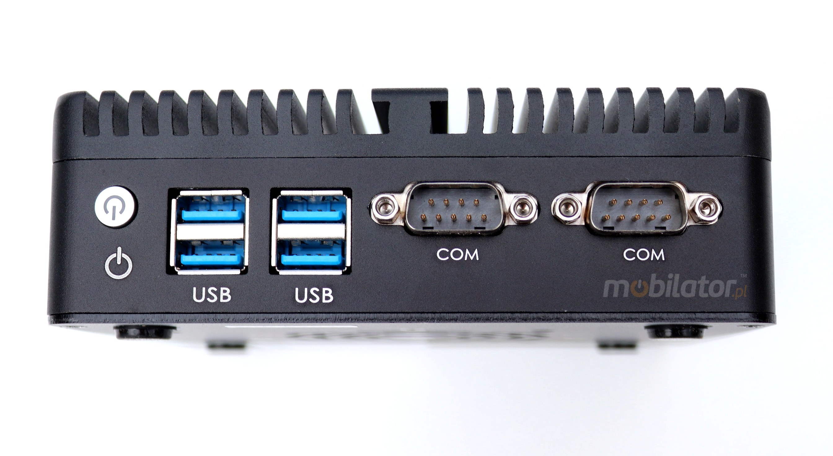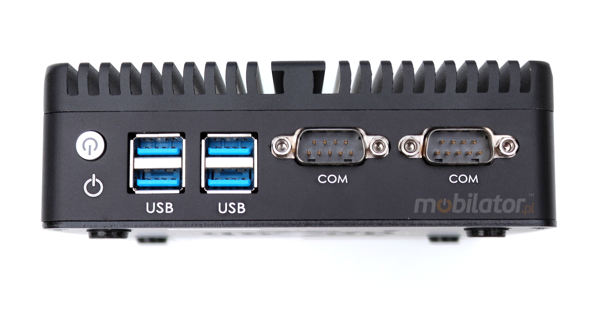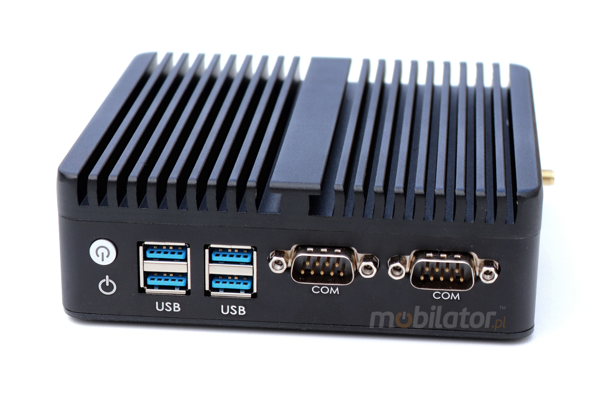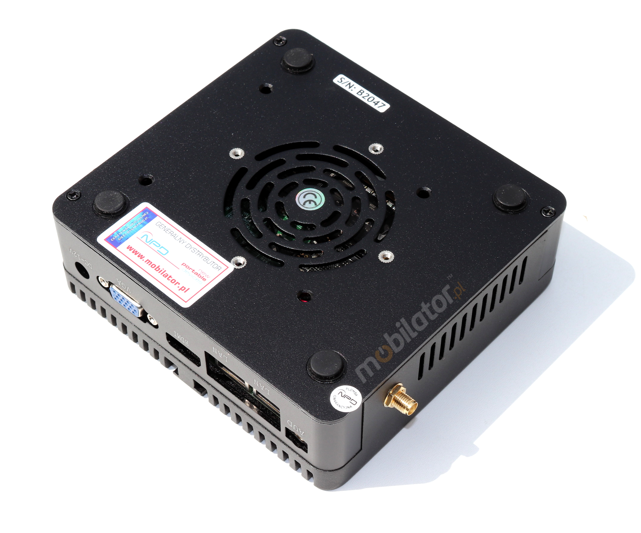 The industrial Mini PC uses a proven cooling system, based only on solid elements, mainly heat sinks.The system uses the phenomenon of metals passing thermal energy into the environment - there are no additional moving elements in the form of eg fans.This solution ensures noiseless operation, lower failure rate and greater protection against dust and other dirt while reducing the amount of energy consumed.