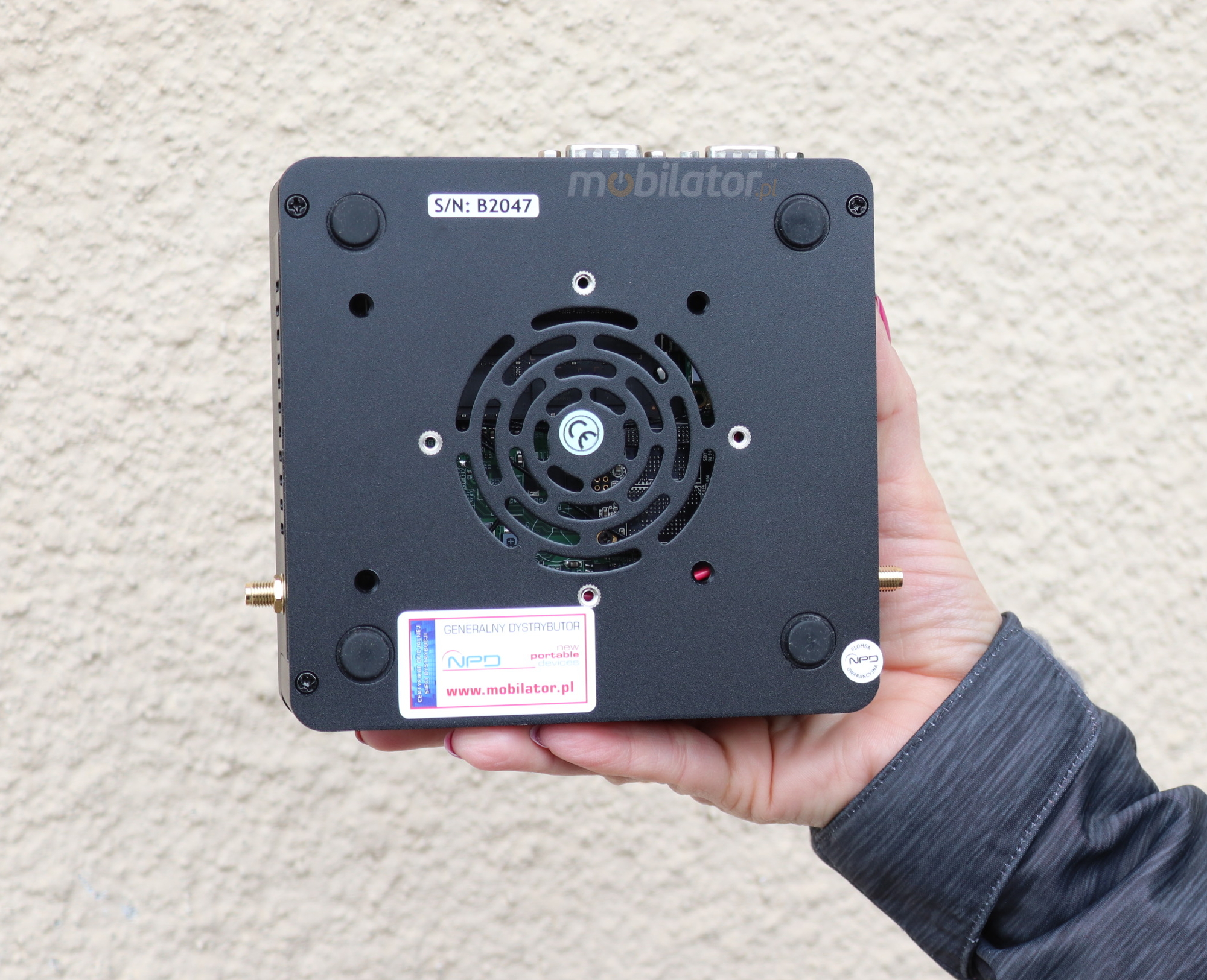 The industrial Mini PC uses a proven cooling system, based only on solid elements, mainly heat sinks.The system uses the phenomenon of metals passing thermal energy into the environment - there are no additional moving elements in the form of eg fans.This solution ensures noiseless operation, lower failure rate and greater protection against dust and other dirt while reducing the amount of energy consumed.