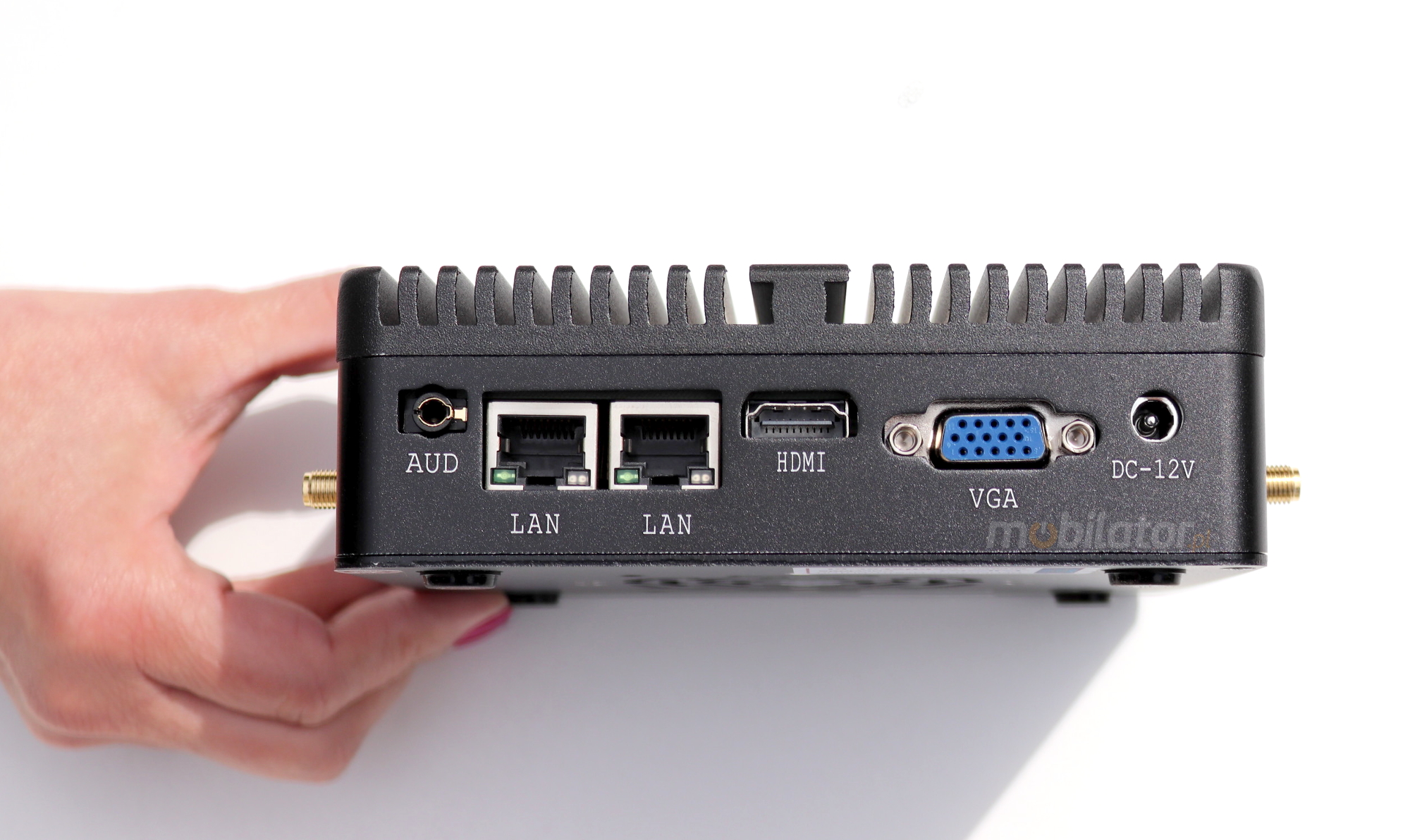The passive cooling system used in the MiniPC yBOX-X30A combined with the SSD disk makes this computer very resistant to various types of mechanical injuries.An additional advantage of industrial computers is a solid construction made of high quality aluminum and specially designed in such a way that in addition to high efficiency in heat dissipation, it can also resist any external damage.