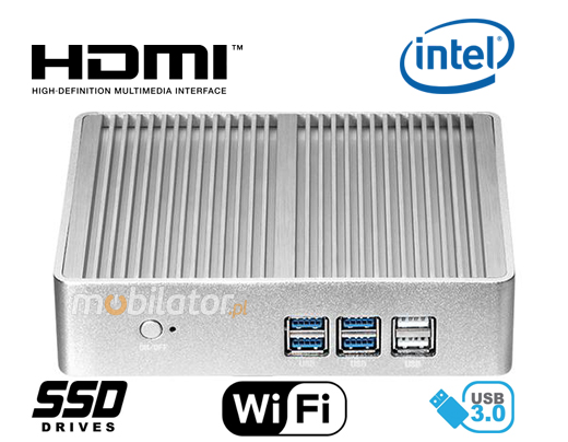 The industrial Mini PC uses a proven cooling system, based only on solid elements, mainly heat sinks. The system uses the phenomenon of metals passing thermal energy into the environment - there are no additional moving elements in the form of eg fans. This solution ensures noiseless operation, lower failure rate and greater protection against dust and other dirt while reducing the amount of energy consumed.