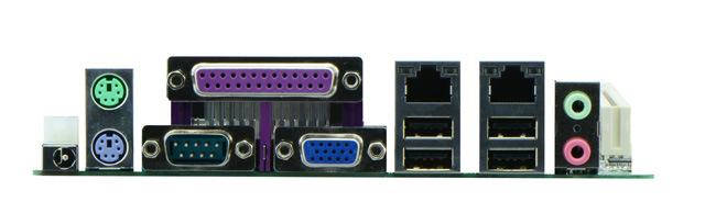 Integrated card - Intel RTL8105E 100M (optional WiFi module) allow connection to the network. The computer is equipped with: two LAN ports, five COM ports (RS232), six USB 2.0 ports, one LPT input, one VGA input, one way audio, one microphone input and connectors built into the motherboard: four USB 2.0 ports, two PowerOUT outputs, one audio output, one CPUFAN, one JVGA connector, one LVDS connector.