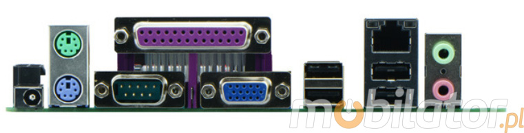 Integrated card - Intel RTL8105E 100M (optional WiFi module) allow connection to the network. The computer is equipped with: one LAN port, six COM ports (RS232), six USB 2.0 ports - optional two potrs COM(RS422/485, one LPT input, one VGA input, one way audio, one microphone input and connectors built into the motherboard: four USB 2.0 ports, two PowerOUT outputs, one audio output, one CPUFAN, one JVGA connector, one LVDS connector.