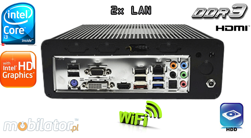 Industrial MiniPC Series mBOX-3240 2LAN are based on high-performance two-core processors and high-quality components. Mini computers are locked in small industrial housing which perfectly discharge heat from the device interior. Wide choice of mBOX models can give possibility to configure, enabling optimal selection of mini computer to multimedia applications and industrial applications. The biggest advantagesPrzemys³owy MiniPC mBOX-3240 2LAN of these devices are: small size, performance and energy efficiency. An extra pair of brackets at the bottom of the enclosure increases the possibility of installation in all kinds of places and positions. Offered model mini PC has been selectively chosen and configured specifically to the requirements of Digital Signage systems, gaming machines, amusement machines, information kiosks and industrial automation systems.