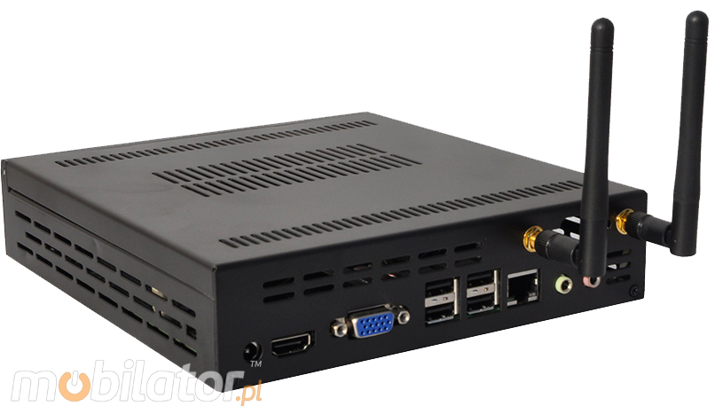 Industrial MiniPC mBOX-I37 by to USB ports can be used to connect multiple devices in the store or warehouse and make them easier to control. Its durable housing is perfectly designed for the harsh conditions prevailing in these areas. Any dust or dirt does not impede him in his work, will work without any problems even in high concentrations of dust and in polluted environments.
