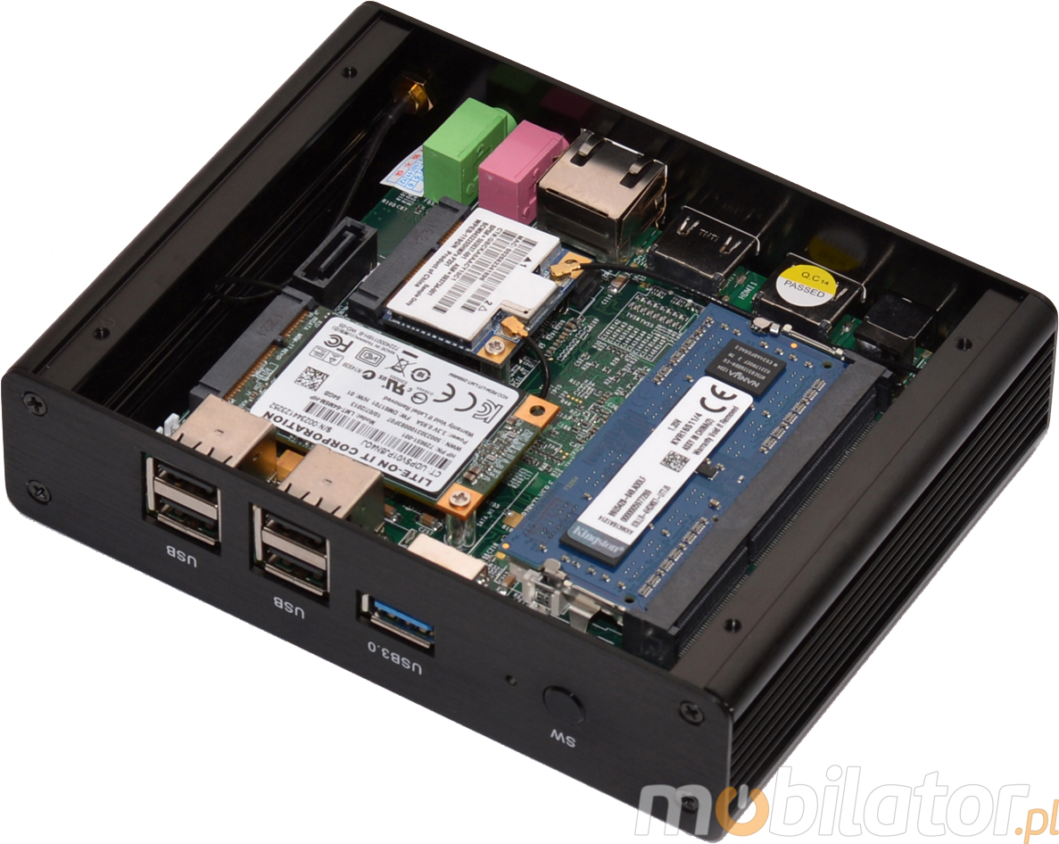 Using the latesttechnologyDigitalEngine (industrial fanless MiniPC) isdesignedfor continuousmultitaskingoperatingwith low power consumption.An importantadvantage is theeffective combination ofsmall sizewith considerableopportunitiesthrough the use ofIntel'sprocessor family,IntelchipsetandDDR3 memory.IntegratedIntel HD Graphicsvideoand audioRealtekALC662allow you to playa wide range ofapplications andmedia files(video, audio)-inFull HD quality.Disks offer free space 8GB/32GB/64GB SSD.