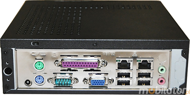 Integrated card - Intel RTL8111DL 100M allow connection to the network. The computer is equipped with: two LAN ports, four USB 2.0 ports, two PS/2 ports, one LPT input, one VGA output, one COM(RS232) conector, one way audio and one microphone input.