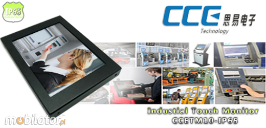 Industial Touch Monitor CCETM10-IP65 has a water-resistant scratch resistant LED screen with 3H hardness. With 1024x768 resolution and high brightness of 250 cd/m2, screen of "5 wire resistive" type with high sensitivity to touch, offers the user a clear picture and ease of use.