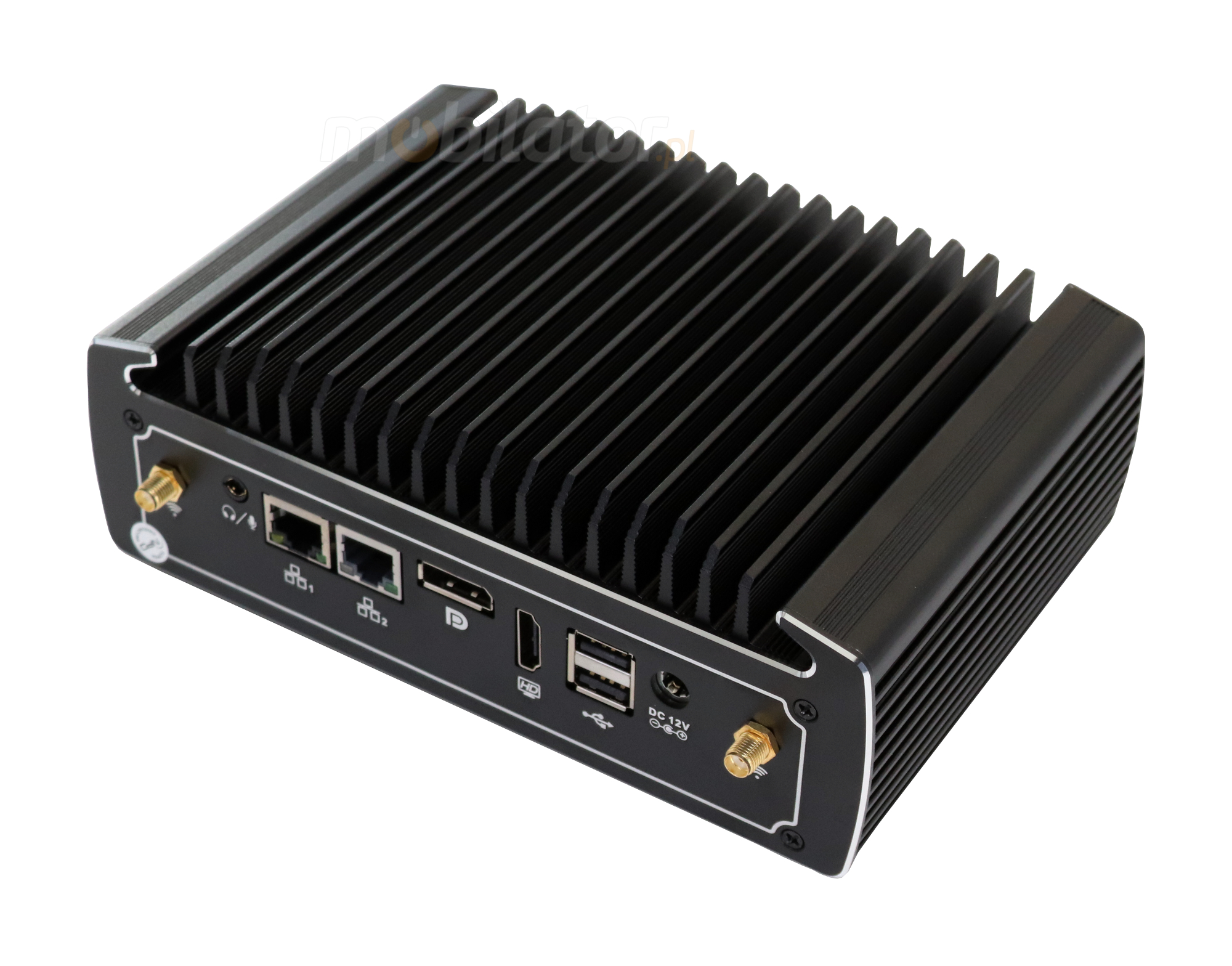 The industrial Mini PC uses a proven cooling system, based only on solid elements, mainly heat sinks. The system uses the phenomenon of metals passing thermal energy into the environment - there are no additional moving elements in the form of eg fans. This solution ensures noiseless operation, lower failure rate and greater protection against dust and other dirt while reducing the amount of energy consumed.