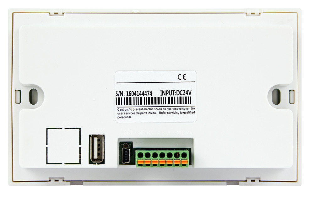 HMI 650H is equipped with a 5 inch (108mm x 65mm) screen and the overall size of its design is only 146mm x 88mm x 25mm, with a cutout size of 135mm x 72mm and its weight is only 330 grams. With such a small size it can be used in even if there is not much available space. In addition, HMI has the possiblility to mount it on a wall for the greatest convenience and ease of access.
