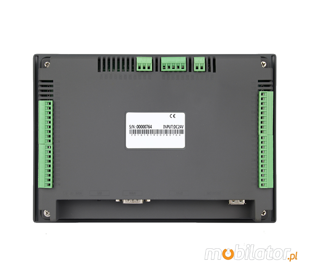 HMI enclosure is made from a specialized blend of PC / ABS (polycarbonate / acrylonitrile-butadiene-styrene)providing a very high resistance to mechanical damage. With this construction it is ready for use even in extreme conditions such as heat, cold or vibration at any time. In addition, the front panel of the device has IP65 international standard, which confirms the water resistance and a complete protection against dust.