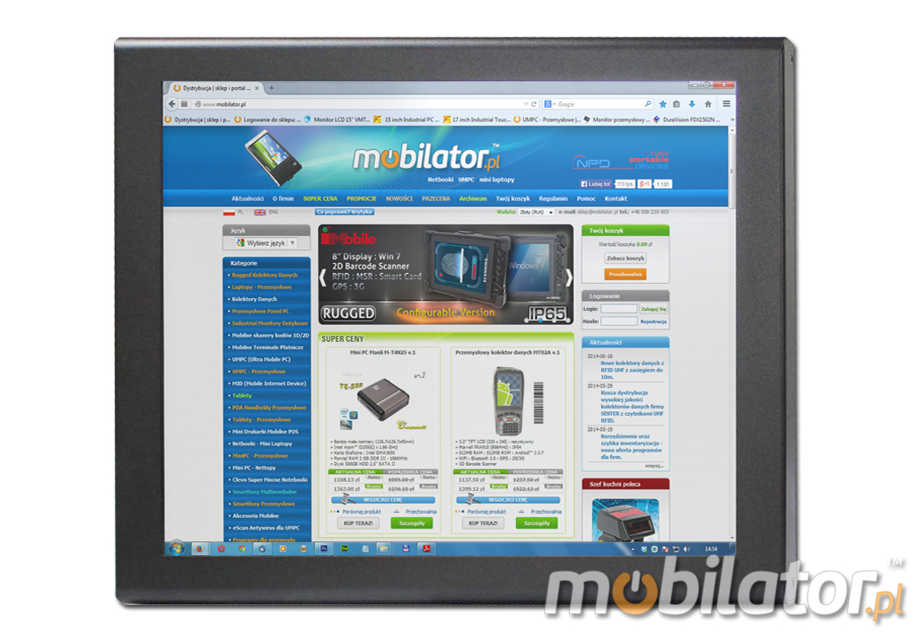 Industrial Panel PC through COM port (RS232) can be used to connect multiple devices in the warehouse (store) and make them easier to control. Its durable housing is perfectly designed for the harsh conditions prevailing in these areas. Any dust or dirt does not impede him in his work, will work without any problems even in high concentrations of dust and in polluted environments.