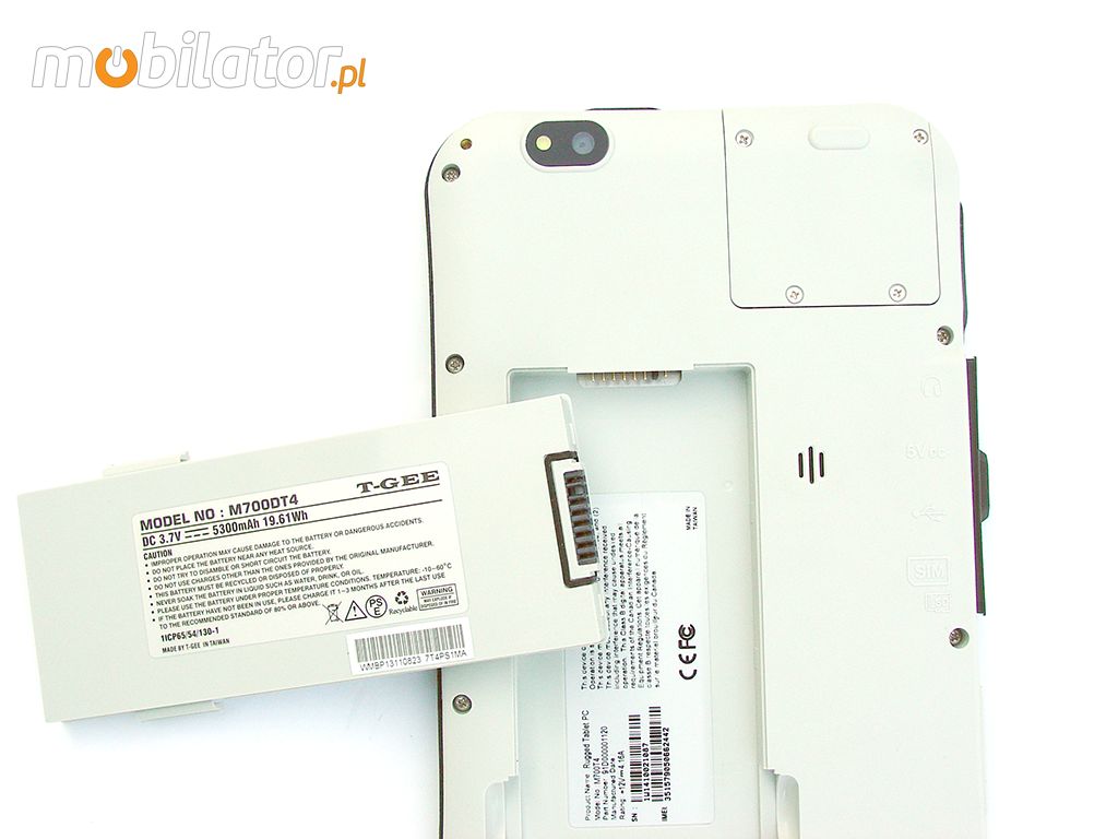 M700DT4 tablet is equipped with a micro USB 2.0 port, microSD card reader, SIM card slot and audio output mini-jack. The possibility of recording enables integrated 5Mpx camera with autofocus.