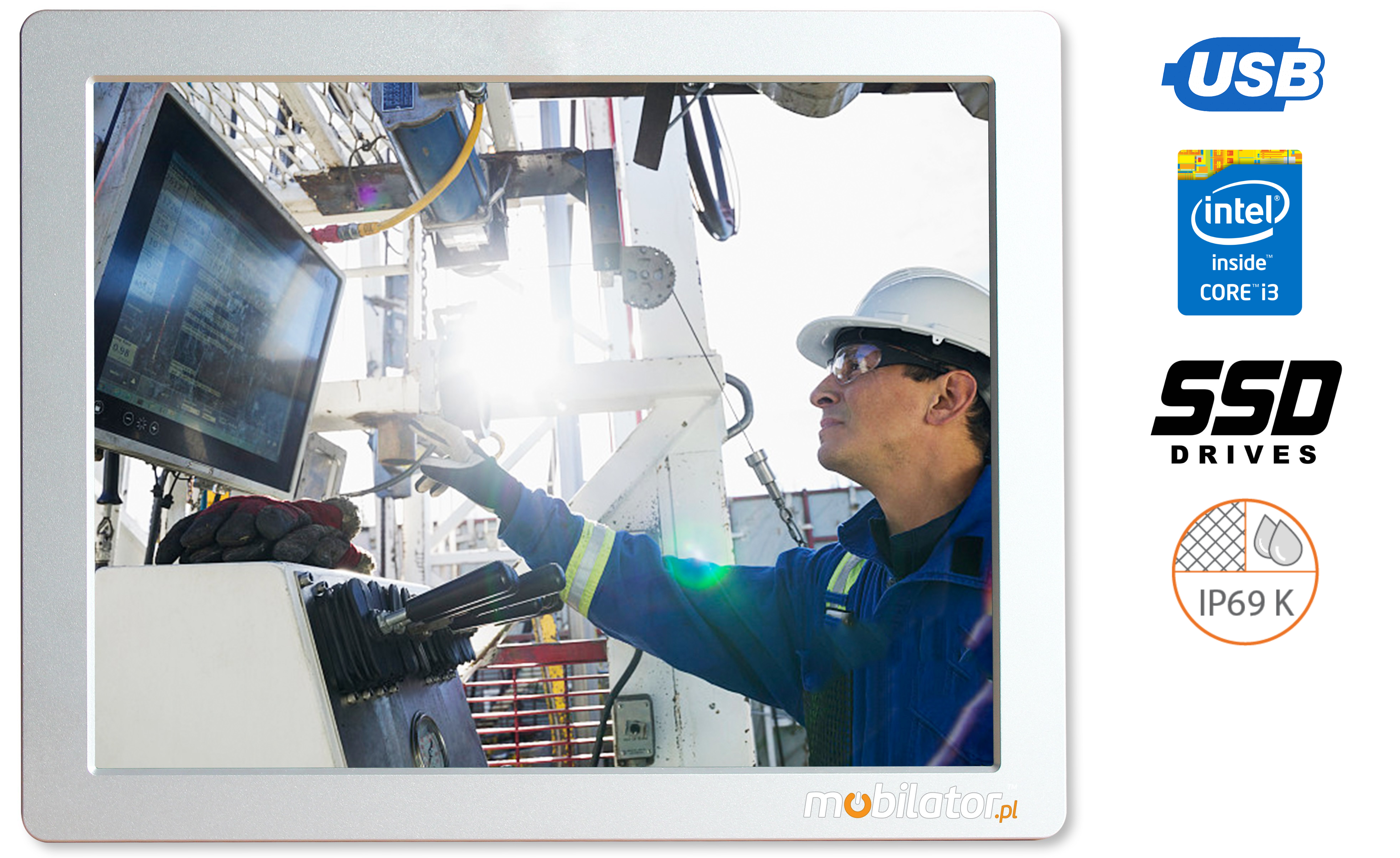 The resistive screen allows you to freely use the touch screen of the PC panel in gloves or with a stylus.