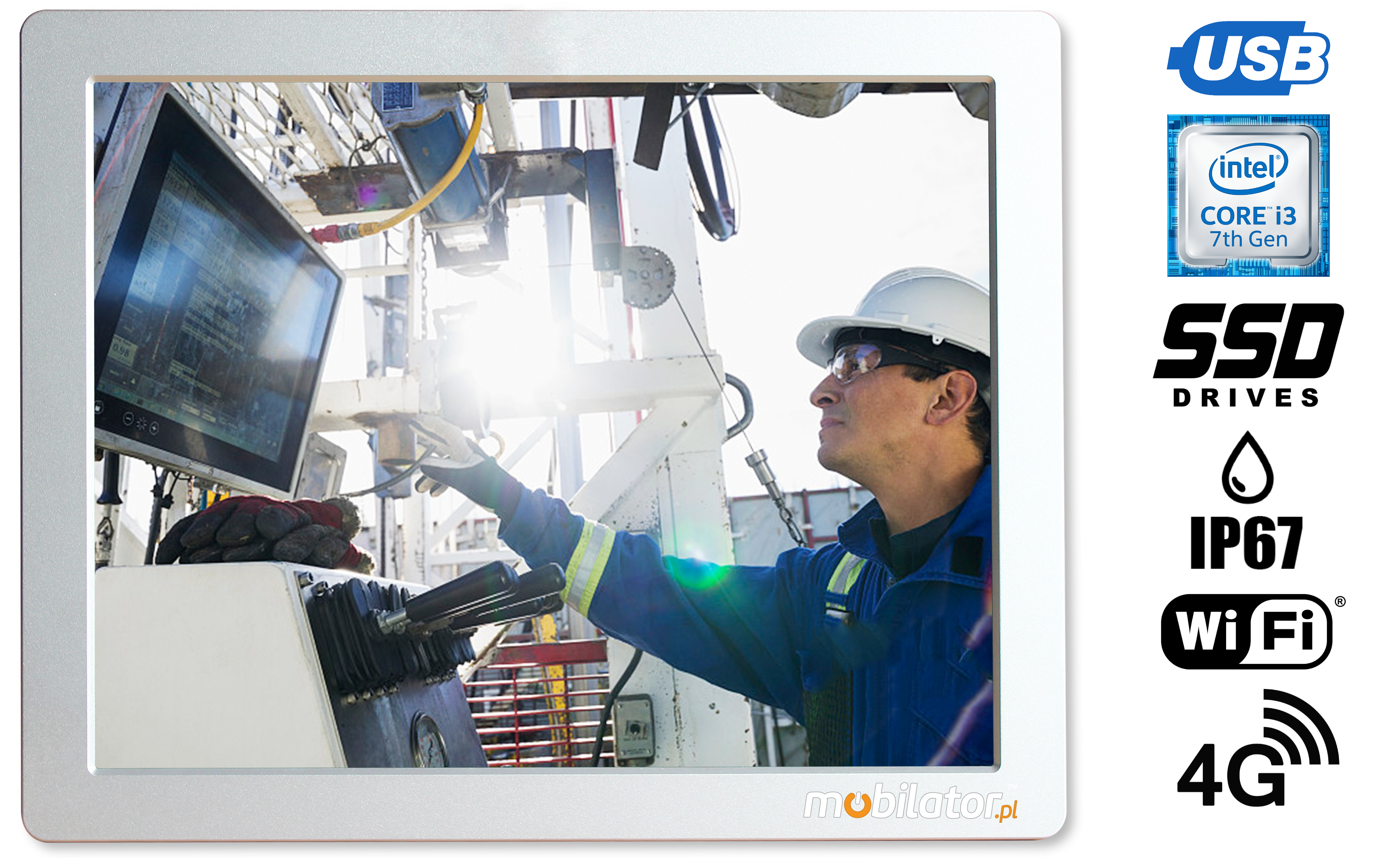 Amplified, waterproof industrial computer QBOX-15BO0R-15BO0R has a water-resistant and scratch-proof 15" LED screen 1024x768 resolution offers good image quality, and high brightness in the 300 cd/m² range gives better color saturation and contrast and allows significantly improved visibility even in the case of incident The display of the resistive type provides the user with a clear image and ease of use by touch.