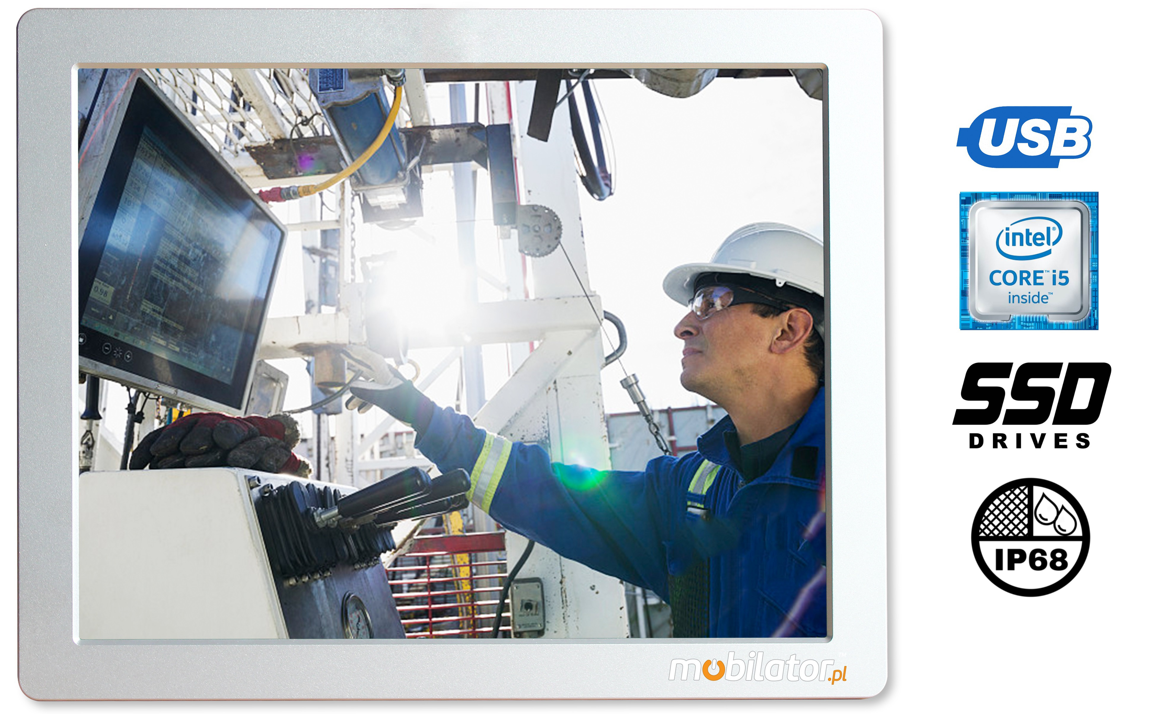 The dust-proof industrial PC panel uses an efficient and energy-saving Intel Corer i5 6200 processor. In its interior there are two cooperating cores enabling more efficient processing of many tasks at the same time. Shared cache memory in which a multi-level hierarchy is used is dynamically allocated to each processor core depending on the load. This reduces the average access time to the main memory. Improved graphics card technology allows you to enjoy movies at full resolution and HD quality