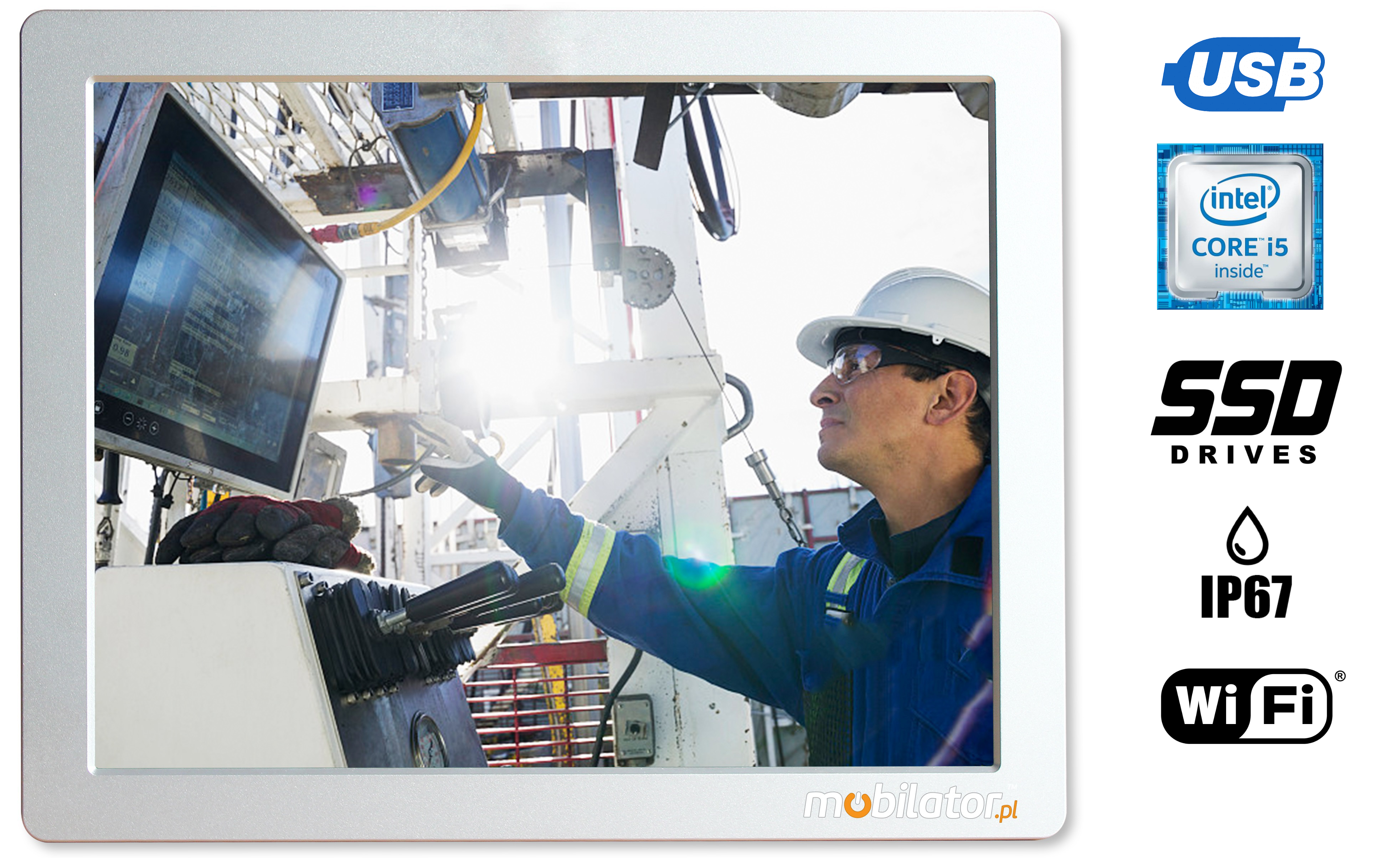 The dust-proof industrial PC panel uses an efficient and energy-saving Intel Corer i5 6200 processor. In its interior there are two cooperating cores enabling more efficient processing of many tasks at the same time. Shared cache memory in which a multi-level hierarchy is used is dynamically allocated to each processor core depending on the load. This reduces the average access time to the main memory. Improved graphics card technology allows you to enjoy movies at full resolution and HD quality