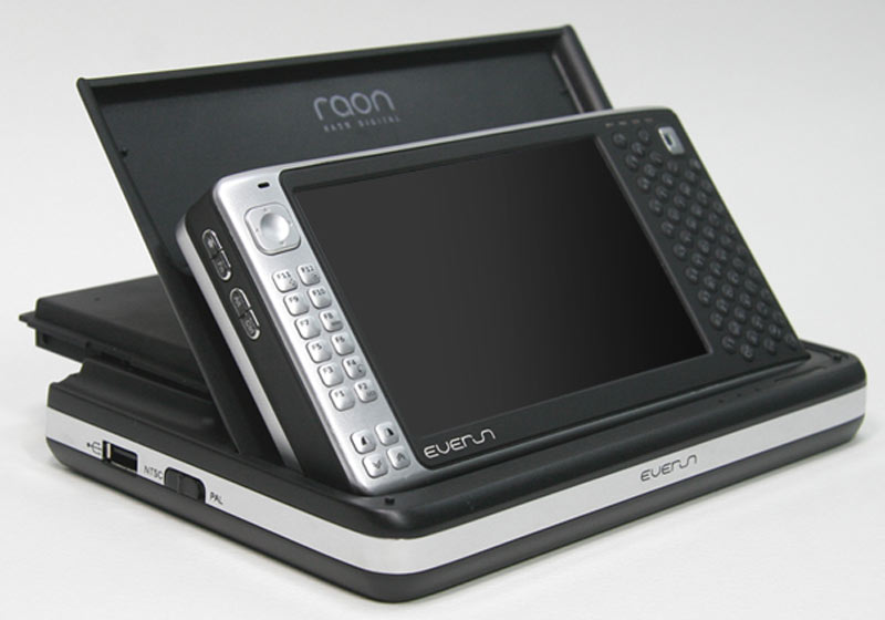 The Raon Digital Everun docking station looks really neat, boasting a cover that can come off and slot in to provide a back rest, with a battery charger located in the rear. Other connectivity options on the Everun docking station include VGA out, audio out, optical SPDIF, Composite Video, S-Video, a trio of USB 2.0 ports, and an Ethernet port. No idea on how much it costs, but the Everun docking station is slated for a December release.