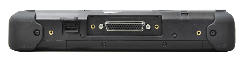 1 x IP65 connector for power input (military grade connector for optional), 1 x LAN port, 1 x Line in, 1 x Line out, 1 x SIM card slot, 1 x Power on/off button, 1 x GPS Ant., 1 x Docking connector support 2 x USB, 1 x COM