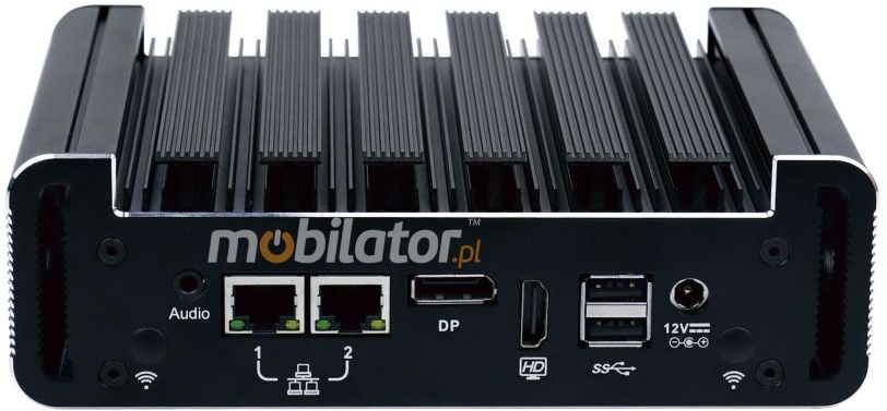 The industrial Mini PC uses a proven cooling system, based only on solid elements, mainly heat sinks. The system uses the phenomenon of metals passing thermal energy into the environment - there are no additional moving elements in the form of eg fans. This solution ensures noiseless operation, lower failure rate and greater protection against dust and other dirt while reducing the amount of energy consumed.