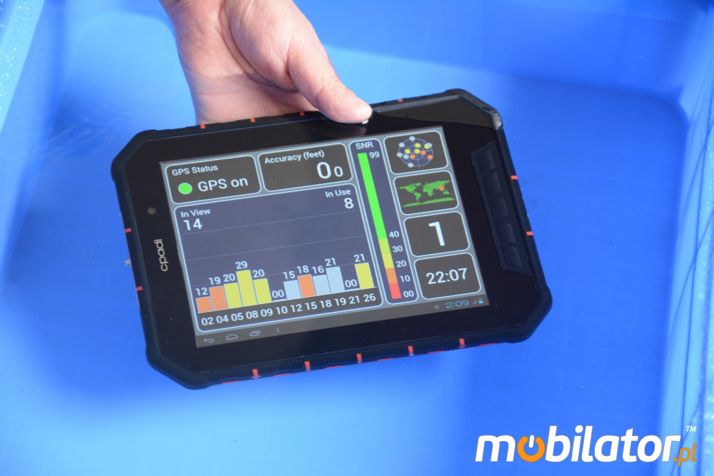 Apollo C8-M is designed to work in a diverse environment. Shock, vibration, falls and work in a wide temperature range makes the tablet can be used in industrial environments as well as in the military. Thanks to the IP68 standard device is fully resistant to water jet and dust. Housing without fear can be cleaned with water to reduce the spread of infection include for medical use.