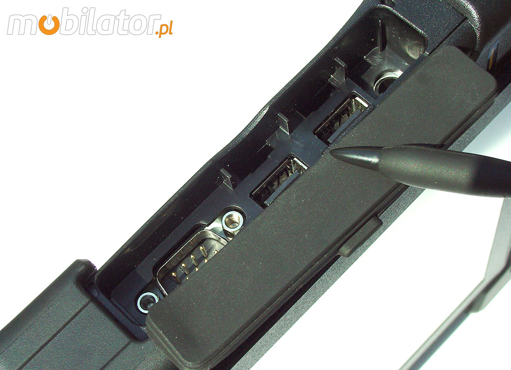 The 2D barcode reader and MSR card reader have been placed in the upper part of the industrial tablet in order to ensure comfort in everyday use in any position. The lower part has been reserved for the dock connector with which the tablet can gain its functionality.