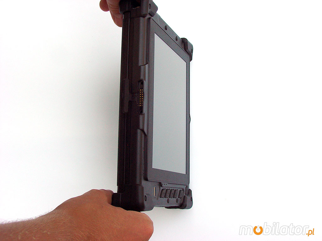 The 2D barcode reader and MSR card reader have been placed in the upper part of the industrial tablet in order to ensure comfort in everyday use in any position. The lower part has been reserved for the dock connector with which the tablet can gain its functionality.