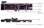 It is possible to use four different inputs/outputs in this holder: 1x RS232, 1x RJ-45 and 2x USB 2.0 which are working after plugging DC.